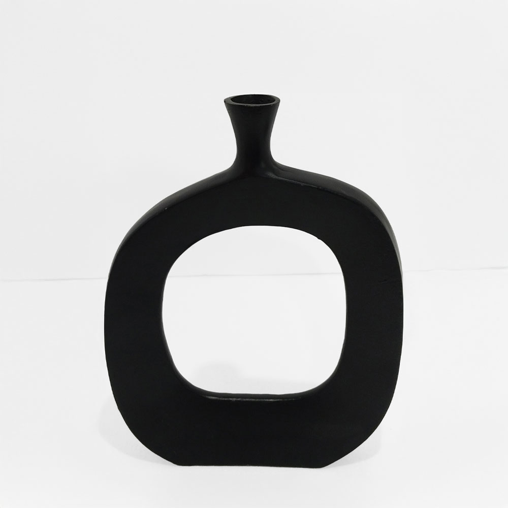 Το ABSTRACT OVAL στη διάσταση 41 cm είναι ένα εντυπωσιακό διακοσμητικό βάζο με οβάλ, γλυπτή φόρμα, κατασκευασμένο από μαύρο αλουμίνιο. Η οβάλ φόρμα του δημιουργεί μια εντυπωσιακή γεωμετρική αρμονία. Συνδυάζεται εύκολα με άλλα διακοσμητικά, προσθέτοντας σύγχρονη αισθητική χωρίς να επιβαρύνει τον χώρο. Η matte υφή του αλουμινίου αναδεικνύει την καθαρότητα του σχεδιασμού.