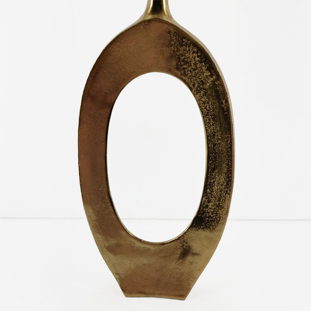 Το βάζο ABSTRACT ξεχωρίζει για τη γλυπτική του φόρμα και το μοντέρνο άνοιγμα στη μέση, δημιουργώντας μια statement αισθητική. Το χρυσό φινίρισμα προσθέτει ζεστασιά και πολυτέλεια σε κάθε χώρο. Η κατασκευή από αλουμίνιο το καθιστά σταθερό αλλά ελαφρύ. Μπορεί να χρησιμοποιηθεί ως διακοσμητικό αντικείμενο ή ως βάση για λεπτά κλαδιά.