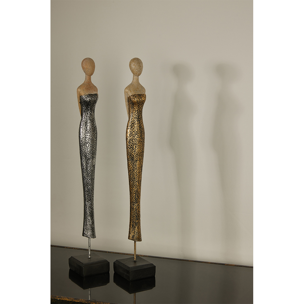 Η ACCUEIL διακοσμητική φιγούρα ξεχωρίζει για τη λιτή, επιμήκη της φόρμα και τον κομψό συνδυασμό μπεζ, χρυσού και μαύρου. Ο σχεδιασμός της είναι διακριτικός αλλά εκφραστικός, προσθέτοντας ύψος και κομψότητα στη διακόσμηση. Με ύψος 46cm και βάση 7x7cm, ταιριάζει ιδανικά σε κονσόλες, μπουφέδες ή εισόδους, λειτουργώντας ως ένα καλαίσθητο statement αντικείμενο. Κατασκευασμένη από polyresin, μπορεί να σταθεί μόνη της ή να συνδυαστεί με άλλα διακοσμητικά για ένα ισορροπημένο αποτέλεσμα.