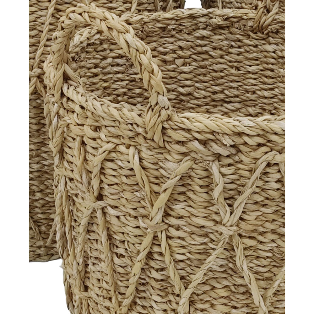 Το σετ αποθηκευτικών καλαθιών ALMAR αποτελεί μια πρακτική και αισθητικά ζεστή λύση για την οργάνωση κάθε χώρου. Κατασκευασμένα από ανθεκτικό seagrass, τα καλάθια διαθέτουν στιβαρή δομή και μεγάλη αντοχή στην καθημερινή χρήση. Η φυσική υφή τους προσφέρει earthy χαρακτήρα, ιδανικό για σαλόνια, υπνοδωμάτια ή laundry rooms. Τα τρία μεγέθη επιτρέπουν οργάνωση μικρών και μεγαλύτερων αντικειμένων με ευελιξία. Μια κομψή επιλογή που συνδυάζει λειτουργικότητα και minimal φυσικό design.