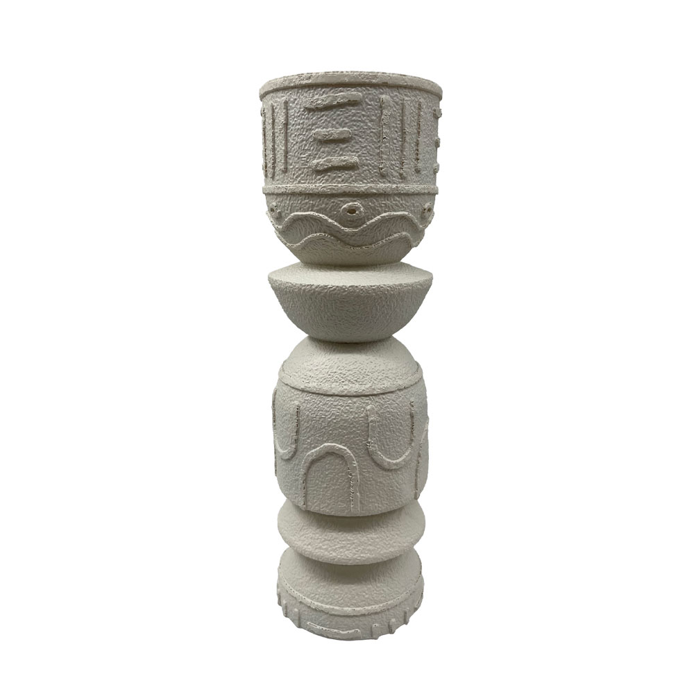 Το κηροπήγιο ANCIENT σε διαστάσεις 10x10x32cm είναι κατασκευασμένο από polyresin σε λευκή απόχρωση, με ανάγλυφα μοτίβα που δίνουν μια πιο διαχρονική, γλυπτική αίσθηση. Το μεγαλύτερο ύψος του το κάνει ιδανικό για να δημιουργεί επίπεδα στη διακόσμηση και να ξεχωρίζει πιο έντονα μέσα στη σύνθεση. Ταιριάζει όμορφα σε τραπέζια, κονσόλες ή δίσκους, είτε μόνο του είτε σε συνδυασμό με το μικρότερο μέγεθος, μαζί με κεριά που προσθέτουν ζεστασιά και ισορροπία στον χώρο.