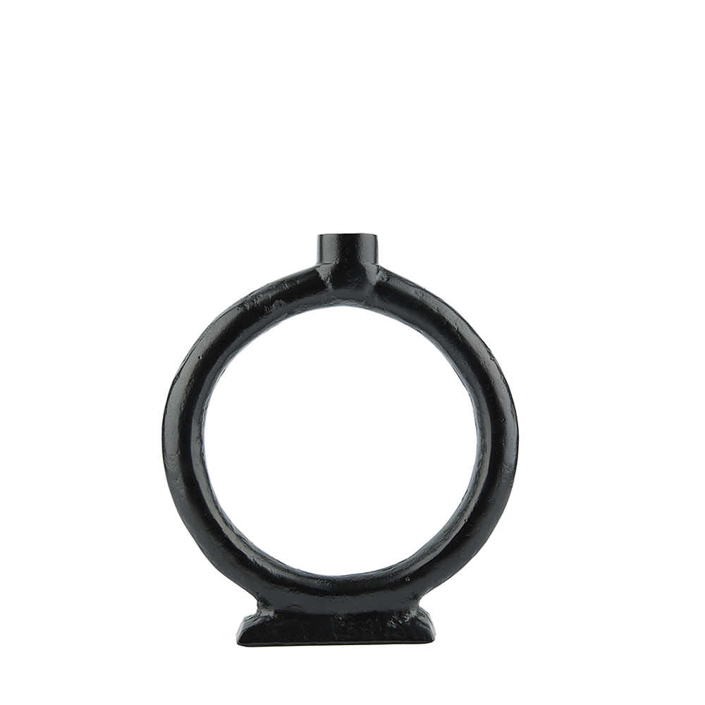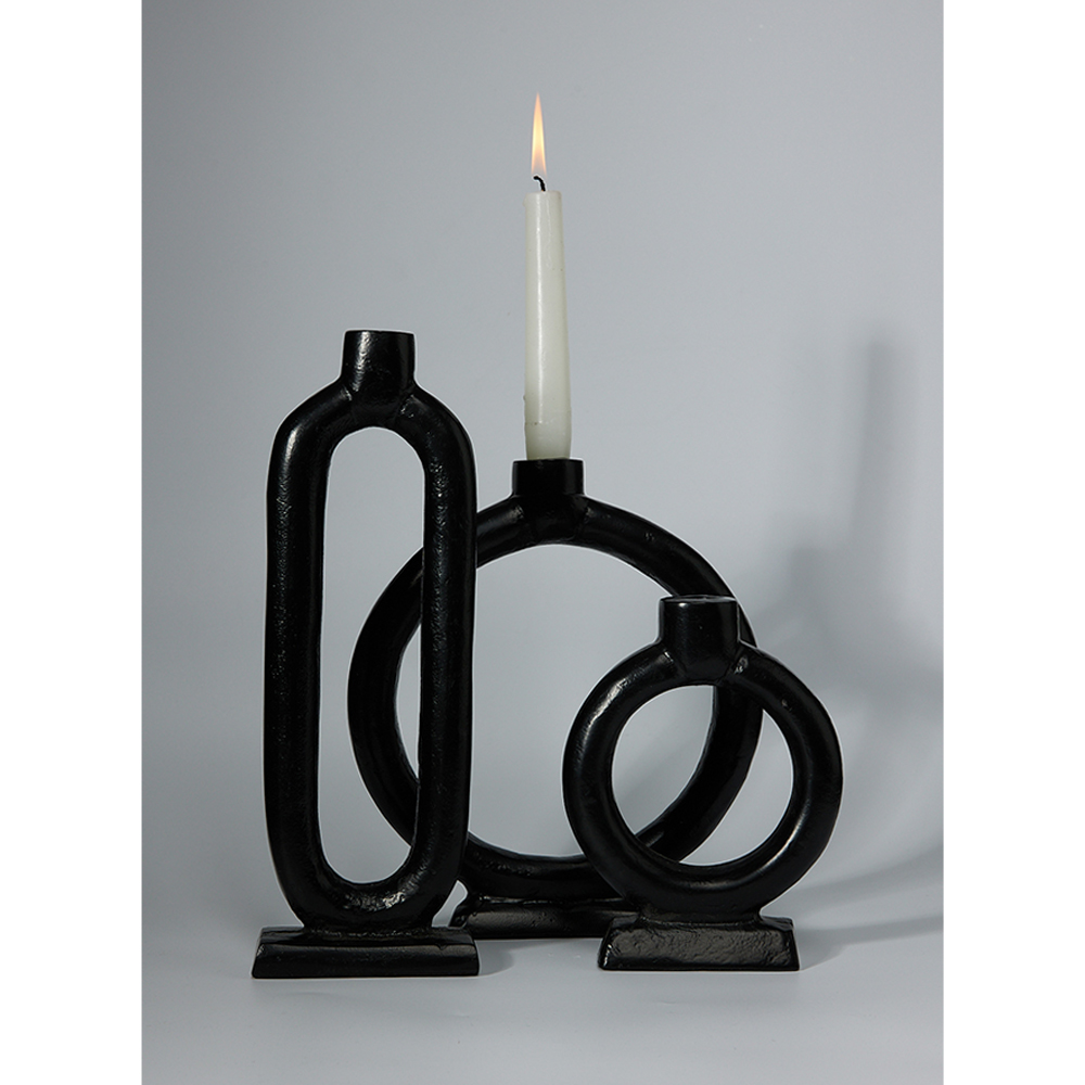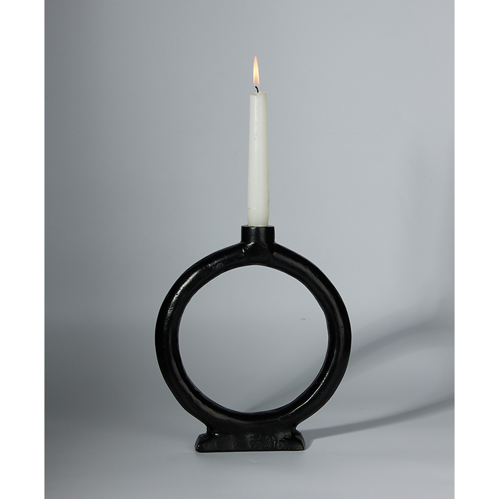Το Anell είναι ένα σύγχρονο κηροπήγιο από αλουμίνιο, με εντυπωσιακό κυκλικό σχεδιασμό που λειτουργεί σαν γλυπτική λεπτομέρεια στον χώρο. Η μαύρη matte επιφάνειά του προσθέτει minimal κομψότητα και μοντέρνα αισθητική. Η στιβαρή κατασκευή του προσφέρει άριστη σταθερότητα, καθιστώντας το ιδανικό για τραπέζια, ράφια ή διακοσμητικές συνθέσεις. Ένα statement κομμάτι που ενισχύει τον χαρακτήρα κάθε εσωτερικού χώρου.