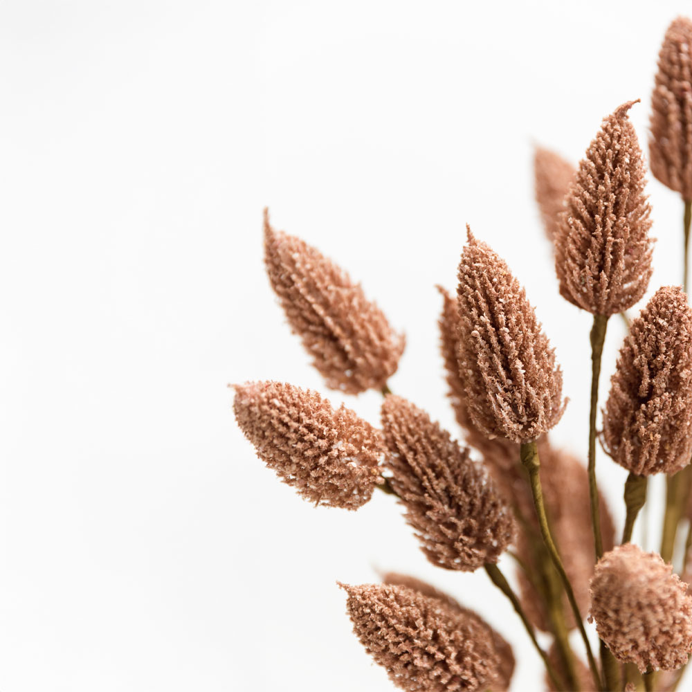 Εντυπωσιακό τεχνητό λουλούδι με πολλαπλές ροζ κεφαλές από αφρώδες υλικό σε φυσικό στέλεχος. Κατάλληλο για σύνθεση σε βάζα ή για εποχική διακόσμηση, αποπνέει ζεστασιά και κομψότητα.