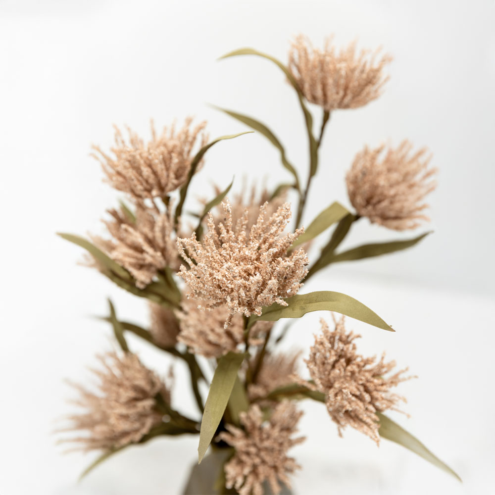 Το τεχνητό λουλούδι AROMA BLOSSOMS 66cm αποτελεί μια εντυπωσιακή διακοσμητική πρόταση που προσθέτει φυσική κομψότητα σε κάθε χώρο. Με έξι πλούσια άνθη σε γήινες καφέ αποχρώσεις και πράσινα φύλλα, προσδίδει αίσθηση φρεσκάδας και ισορροπίας, ενώ η λεπτομέρεια στην κατασκευή από foam και PVC του δίνει ρεαλιστική υφή και ανθεκτικότητα. Ιδανικό για βάζα, διακοσμητικές συνθέσεις ή και ως μεμονωμένο στοιχείο, χαρίζει στον χώρο σας μια διακριτική φυσική αύρα.