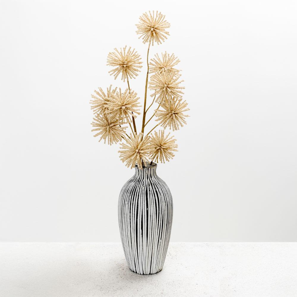 Το τεχνητό λουλούδι AROMA ESSENCE 70cm με έξι στρογγυλά άνθη από foam σε φυσική μπεζ απόχρωση αποπνέει μοντέρνα κομψότητα και οργανική υφή. Το εύκαμπτο κλαδί από PVC προσφέρει σταθερότητα και ελευθερία στη διαμόρφωση, καθιστώντας το ιδανικό για εντυπωσιακές συνθέσεις σε βάζα ή διακοσμητικά projects.