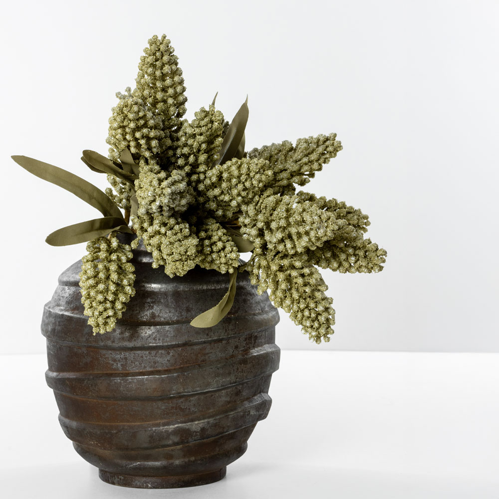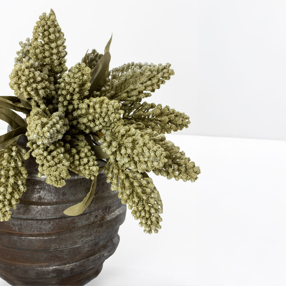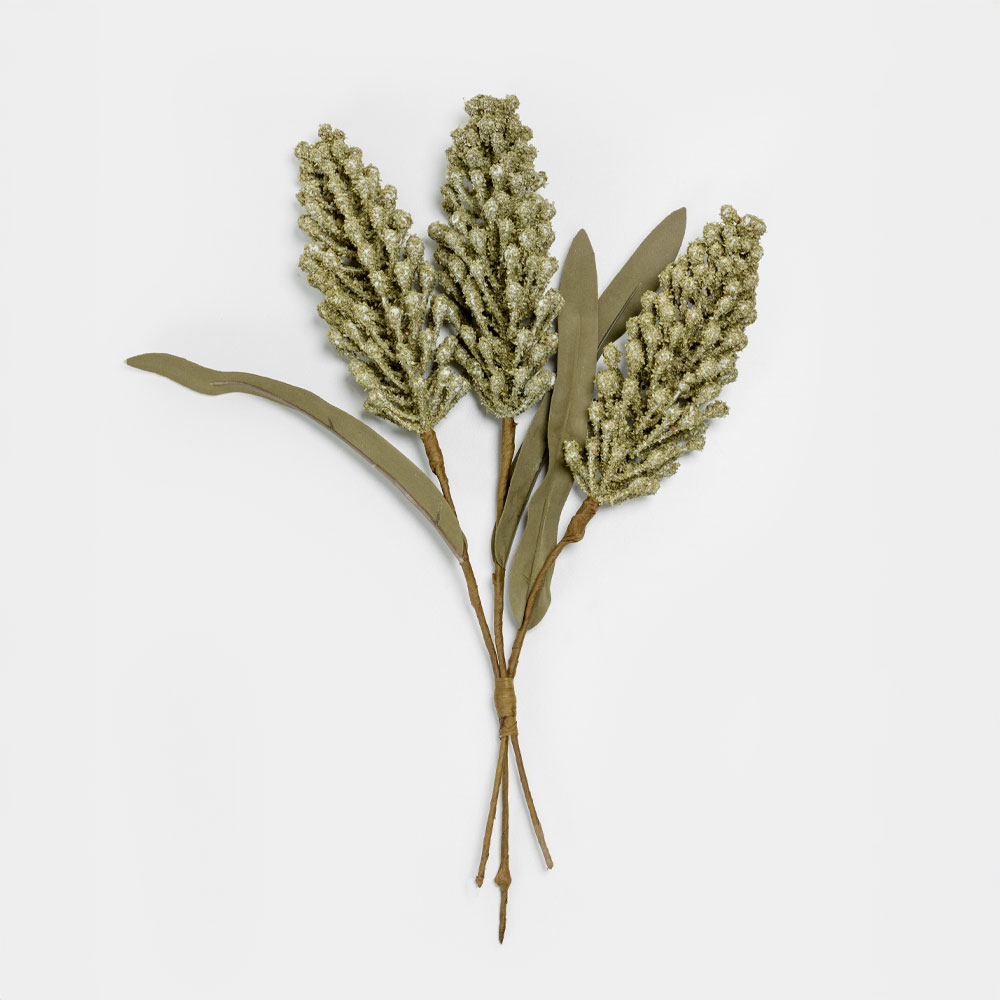 Το AROMA WISHPER είναι ένα τεχνητό λουλούδι με εμφάνιση σταχυών, που φέρνει στον χώρο μια φυσική, γήινη αίσθηση. Οι μικρές, ανάγλυφες κεφαλές του σε πράσινες αποχρώσεις, από foam, θυμίζουν αποξηραμένο φυτό και δίνουν χαρακτήρα χωρίς ένταση.Με ύψος 33cm, είναι ιδανικό για μικρά βάζα, διακοσμητικά μπουκέτα, ράφια ή συνθέσεις με φυσικά υλικά. Η κατασκευή από foam και PVC το διατηρεί σταθερό και όμορφο στον χρόνο, χωρίς καμία ανάγκη φροντίδας.