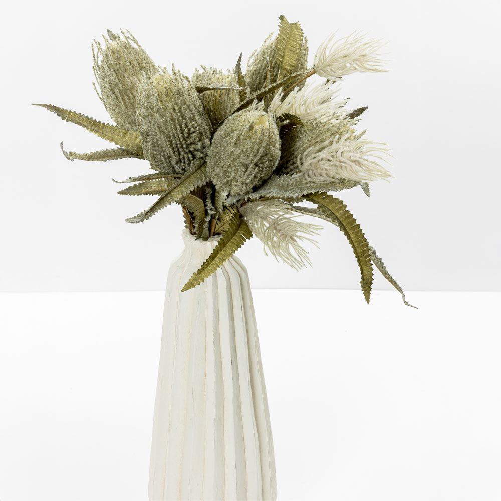 Το AROMA WISHPER είναι ένα τεχνητό λουλούδι με απαλή κίνηση και φυσική ισορροπία, που προσθέτει διακριτική φρεσκάδα στον χώρο. Οι πράσινες αποχρώσεις του, κατασκευασμένες από foam, δημιουργούν ένα ανάλαφρο και καλαίσθητο αποτέλεσμα που δένει εύκολα με σύγχρονες και minimal συνθέσεις.Με ύψος 64cm, είναι ιδανικό για μεσαία και ψηλά βάζα, διακοσμητικές συνθέσεις τραπεζιού ή επαγγελματικούς χώρους που χρειάζονται μια ήπια αλλά ουσιαστική floral πινελιά. Ο συνδυασμός foam και PVC προσφέρει ανθεκτικότητα και σταθερή εμφάνιση στον χρόνο, χωρίς καμία ανάγκη συντήρησης.