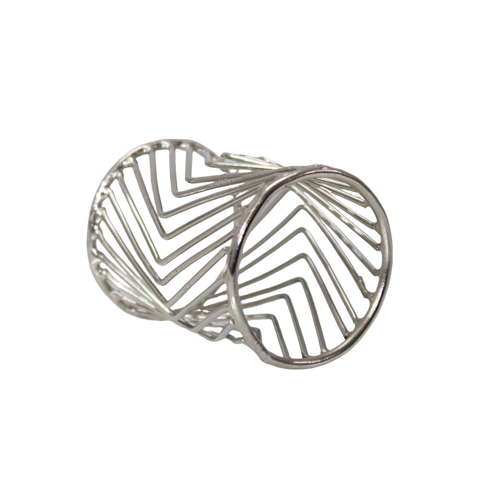 Εντυπωσιακό δαχτυλίδι πετσέτας από αλουμίνιο με ασημί μεταλλικό φινίρισμα και ιδιαίτερο ανοιχτό σχέδιο. Προσθέτει μοντέρνο χαρακτήρα και λάμψη σε κάθε σερβίρισμα.