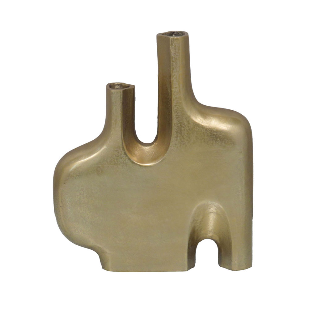 Το εντυπωσιακό βάζο BRONTIE κερδίζει αμέσως το βλέμμα χάρη στη μοναδική, ανορθόδοξη φόρμα του που θυμίζει σύγχρονο έργο τέχνης. Η χρυσή επιφάνεια από αλουμίνιο προσδίδει πολυτελή υφή και δυνατό decorative impact. Η αφαιρετική του μορφολογία ταιριάζει ιδανικά σε modern, luxury και artistic χώρους, λειτουργώντας ως statement αντικείμενο. Αναδεικνύεται πλήρως σε κονσόλες, ράφια και galleries-style διακόσμηση.