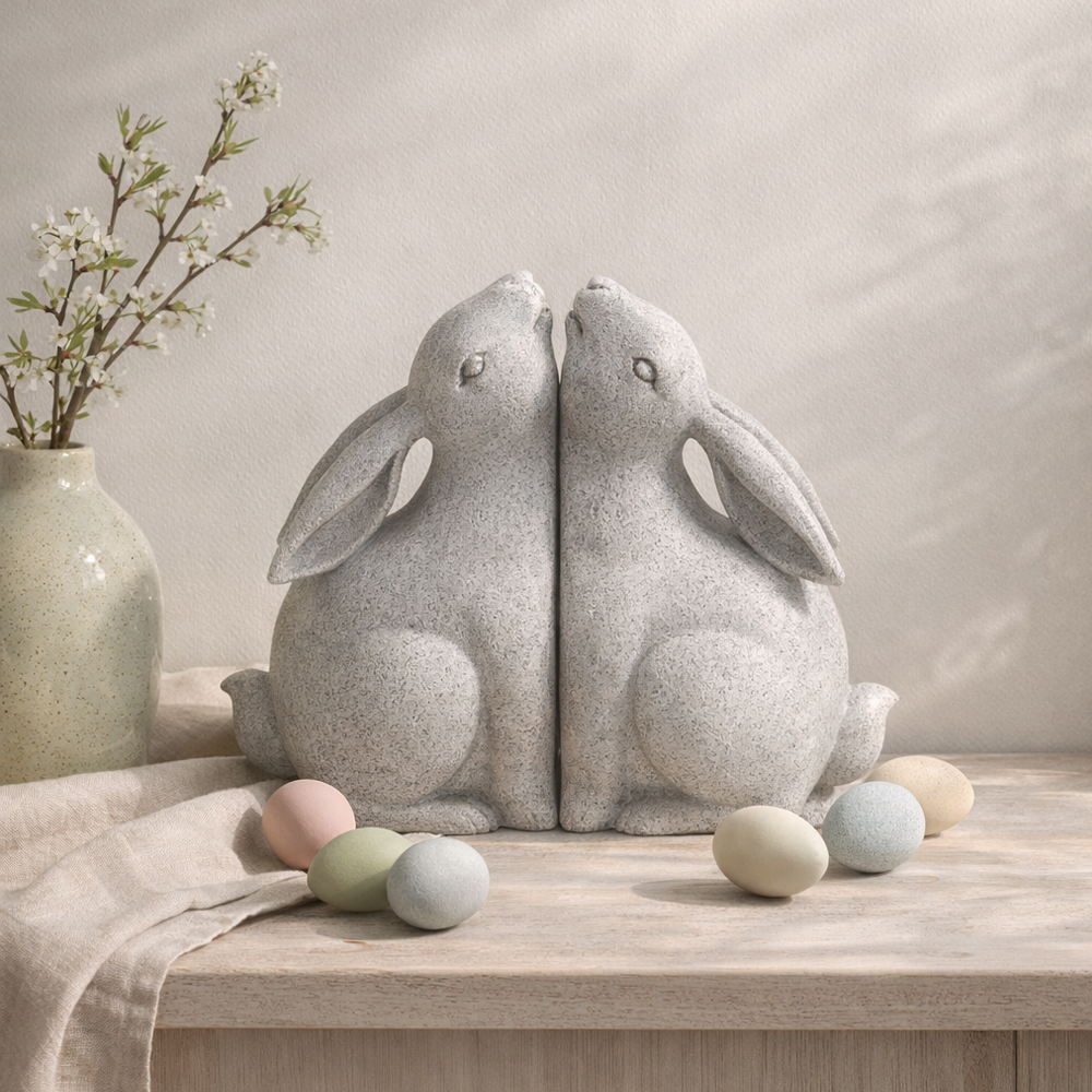 Ο μπεζ βιβλιοστάτης Bun Bun, κατασκευασμένος από polyresin,με τα χαριτωμένα κουνελάκια είναι ένα παιχνιδιάρικο αλλά και πρακτικό διακοσμητικό αντικείμενο για τον χώρο σας. Tο σετ περιλαμβάνει δύο βιβλιοστάτες σε σχήμα κουνελιών, προσφέροντας μια ευχάριστη και φιλόξενη αίσθηση σε οποιοδήποτε δωμάτιο. Η σύγχρονη σχεδίαση τους, μαζί με τη λειτουργικότητα τους, τους καθιστά ιδανικούς για να οργανώσετε τα βιβλία σας. Ο βιβλιοστάτης Bun Bun είναι η τέλεια επιλογή για να προσθέσετε μία διασκεδαστική και σύγχρονη πινελιά στη διακόσμηση του σπιτιού ή του γραφείου σας.