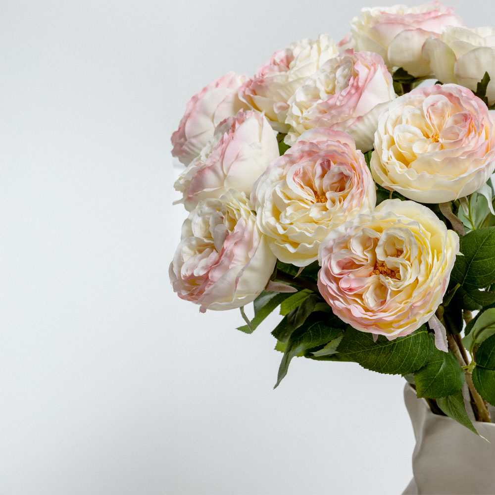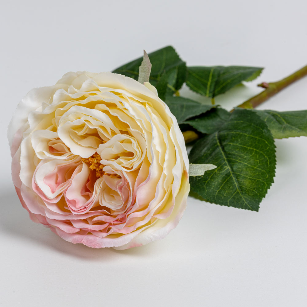 Το λευκό τεχνητό λουλούδι CABBAGE ROSE 66cm με τις όμορφες και διακριτικές ροζ λεπτομέρειες στις άκρες των πετάλων, θα γεμίσει το χώρο με θετική ενέργεια και στυλ, δίνοντας παράλληλα μια αίσθηση πολυτέλειας που θα σαγηνεύσει. Η εξαιρετική του κατασκευή από πολυεστέρα, κάνει τα φύλλα να μοιάζουν με αληθινά, ενώ το βαθύ πράσινο κλωνάρι το καθιστά ικανό να στέκεται και να διακοσμεί το βάζο μόνο του ή σε υπέροχες ανθοσυνθεσεις. Ιδανικό για minimal και industrial διακοσμήσεις, συνδυάζεται άψογα με σκούρες αλλά και πιο φωτεινές και πολύχρωμες αποχρώσεις που θα αναβαθμίσουν τη διακόσμηση κάθε οικιακού αλλά και επαγγελματικού χώρου.