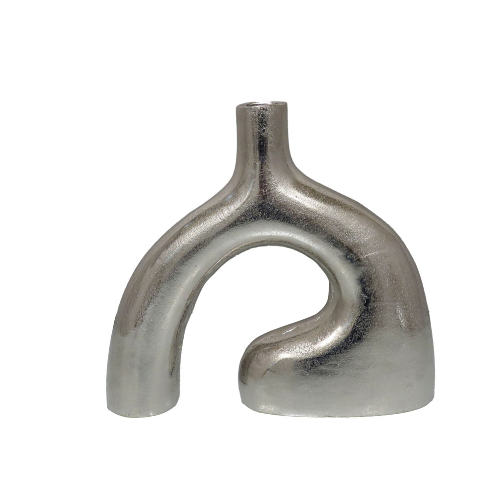Το βάζο CALAN ξεχωρίζει με τη γλυπτική του φόρμα, δημιουργώντας ένα αφαιρετικό και μοντέρνο διακοσμητικό στοιχείο για κάθε χώρο. Η ασημί απόχρωση και η απαλή καμπύλη γραμμή του προσφέρουν premium αισθητική με έντονη καλλιτεχνική ταυτότητα. Κατασκευασμένο από αλουμίνιο, εξασφαλίζει υψηλή αντοχή και σταθερότητα, ιδανική για καθημερινή χρήση. Ιδανικό για minimal, modern ή gallery-style εσωτερικούς χώρους.