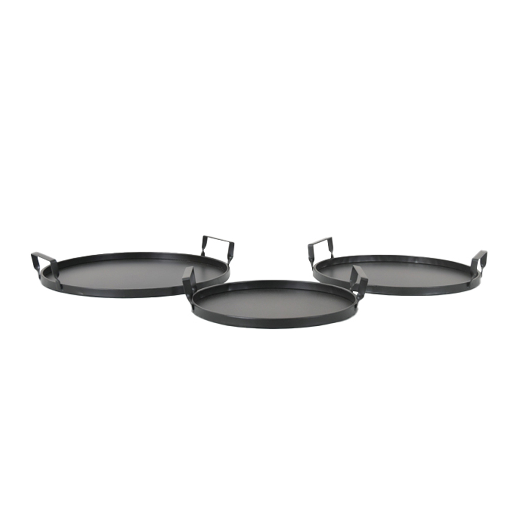 Το CART είναι σετ 3 στρογγυλών δίσκων από μέταλλο σε μαύρο χρώμα, με διαστάσεις 37x35x6cm. Με μοντέρνο σχεδιασμό και πρακτικά χερούλια, είναι ιδανικοί για διακόσμηση τραπεζιού, βιτρίνας ή και για σερβίρισμα.