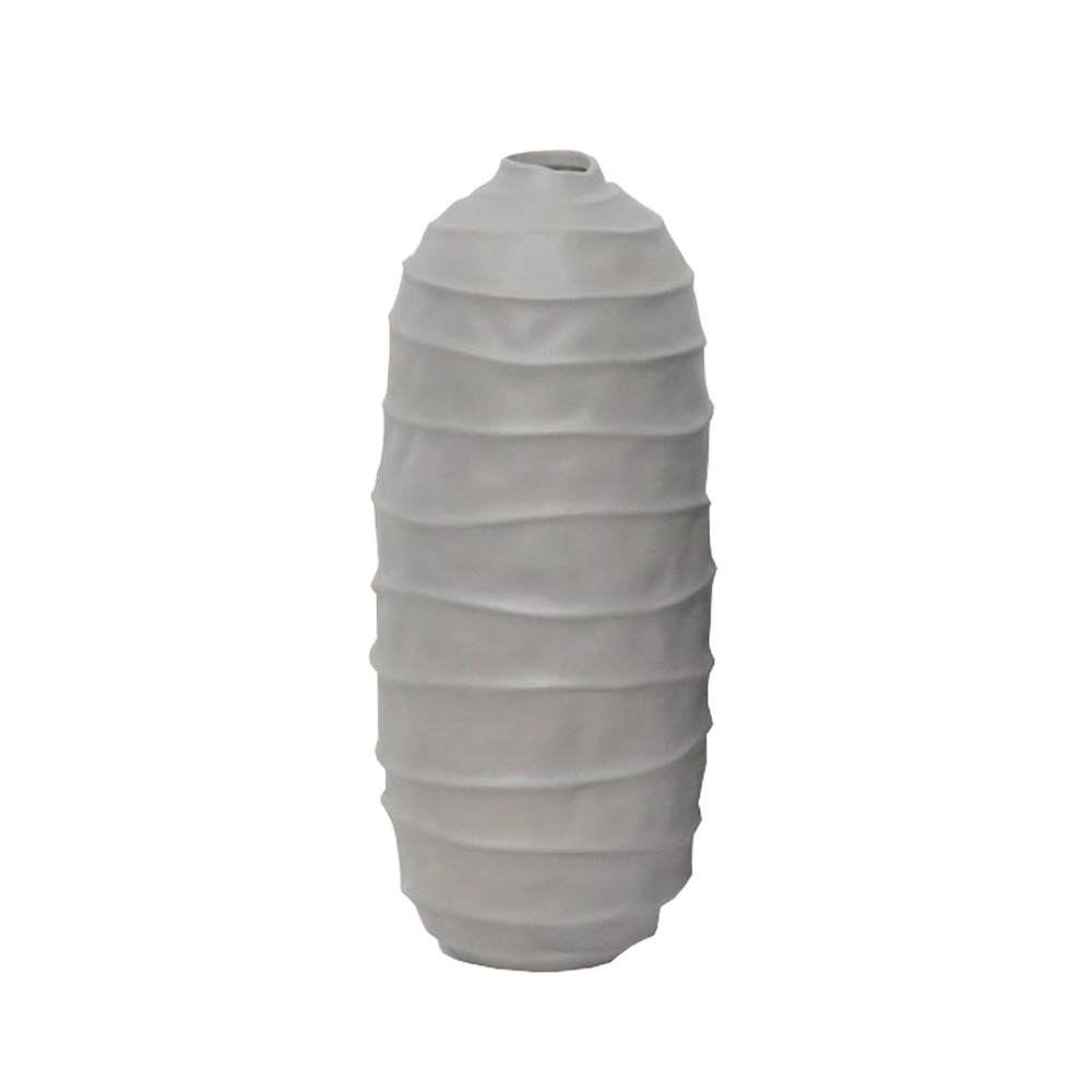 Το κεραμικό βάζο Cemento σε απόχρωση ματ γκρι εντυπωσιάζει με τη μίνιμαλ και industrial αισθητική του. Η ανάγλυφη υφή της επιφάνειας και η αυστηρή γεωμετρία της φόρμας του προσδίδουν μοντέρνο χαρακτήρα και κάνουν το βάζο ιδανικό για σύγχρονους χώρους, επαγγελματικούς ή οικιακούς. Το ύψος του επιτρέπει τη χρήση του ως σημείο αναφοράς σε ράφια, κονσόλες ή δάπεδο, δημιουργώντας ένα ισορροπημένο οπτικό αποτέλεσμα. Η χρήση του είναι αποκλειστικά διακοσμητική, καθώς δεν ενδείκνυται για τοποθέτηση νερού.