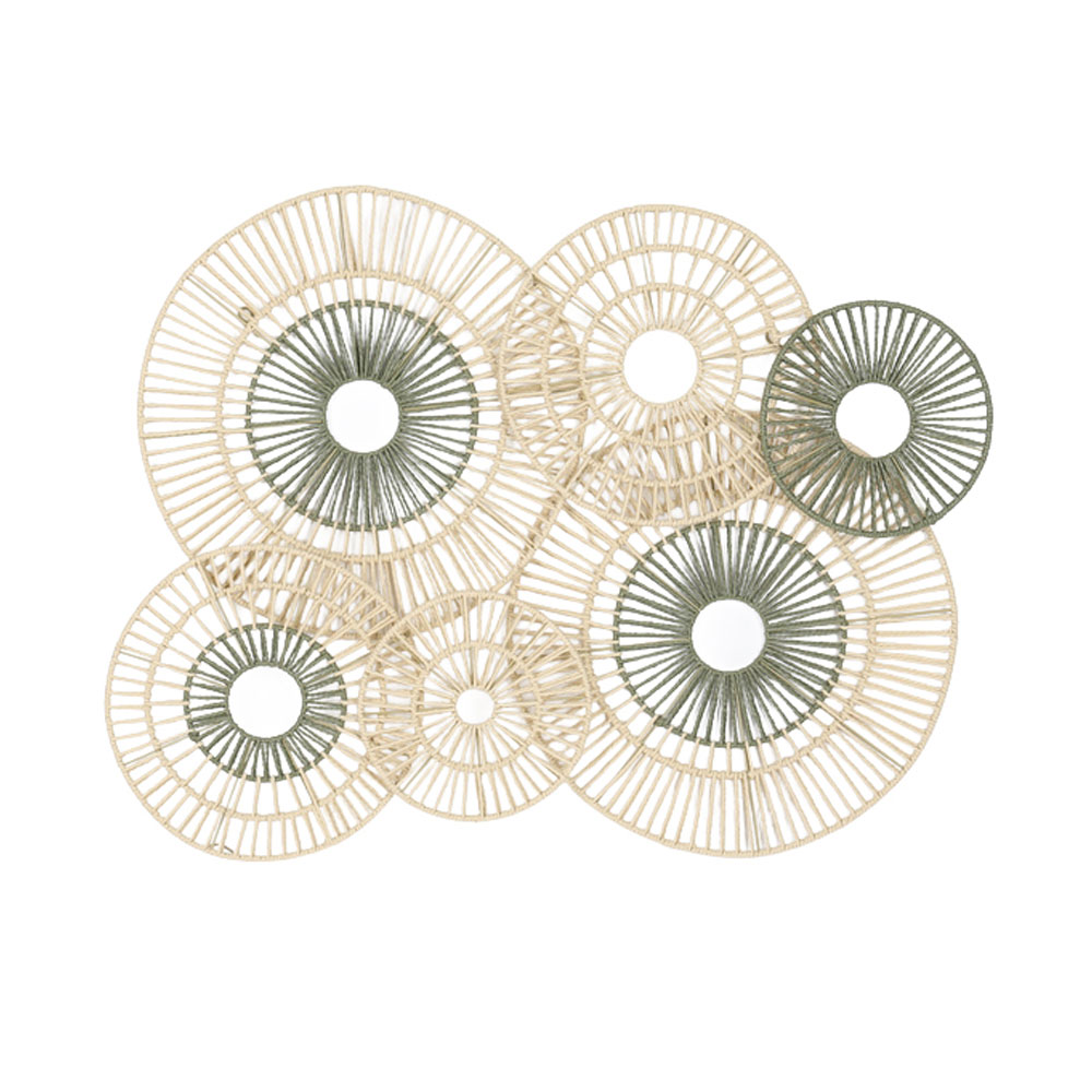Το διακοσμητικό τοίχου CIELA είναι ένα ιδιαίτερο διακοσμητικό που συνδυάζει χαρτί και μέταλλο, δημιουργώντας ένα παιχνίδι ανάμεσα στη λεπτότητα και τη δυναμικότητα. Οι φυσικοί και mint τόνοι προσφέρουν αίσθηση φρεσκάδας, ενώ οι κυκλικές φόρμες δίνουν μια απαλή, καλλιτεχνική κίνηση. Ένα κομμάτι που φωτίζει τον χώρο με τον πιο elegant τρόπο.