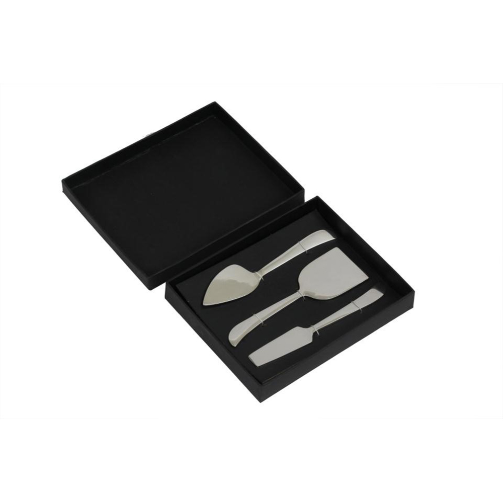 Το CURVE σετ τυριών διαθέτει καθαρές γραμμές και minimal αισθητική, προσφέροντας ακρίβεια και άνεση στη χρήση. Η ασημί υφή δίνει μια διακριτική λάμψη στο τραπέζι. Ιδανικό για ποικιλίες τυριών και modern cheese platters.
