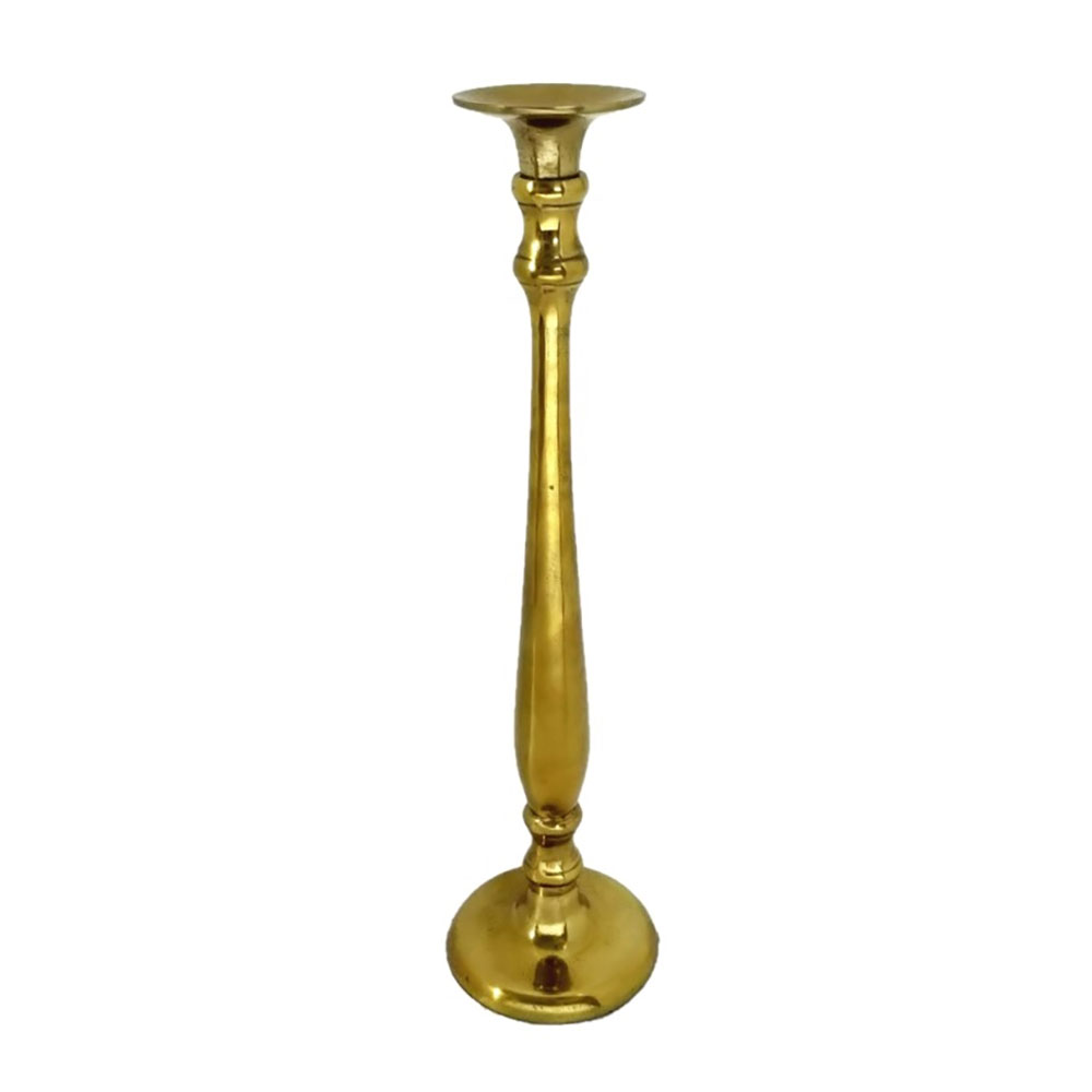 Το ENSUI στα 65 cm είναι ένα εντυπωσιακό κηροπήγιο αλουμινίου με γλυπτική χρυσή φόρμα. Η καμπύλη γραμμή του δημιουργεί ένα κομψό παιχνίδι φωτός, ενώ η στιβαρή μεταλλική βάση προσφέρει απόλυτη σταθερότητα. Η χρυσή απόχρωση αναδεικνύει πολυτελείς και μοντέρνους χώρους, προσθέτοντας ύψος, λάμψη και διακοσμητική αρμονία σε τραπέζια, κονσόλες και μεγάλα σαλόνια.