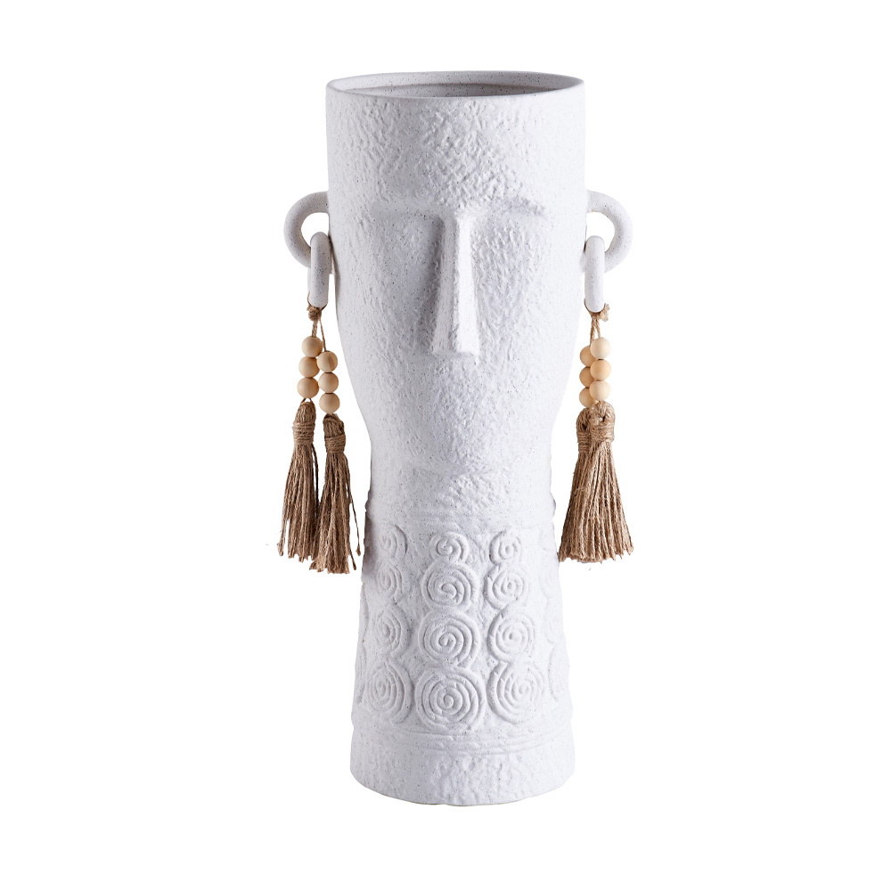 Το κεραμικό βάζο Eris σε λευκή απόχρωση ξεχωρίζει για τη μορφή του και την επιφάνειά του που δίνει υφή στη σύνθεση. Οι λεπτομέρειες με τα φυσικά στοιχεία προσθέτουν χαρακτήρα και μια πιο ζεστή εικόνα στον χώρο.Ταιριάζει σε σύγχρονες αλλά και πιο φυσικές διακοσμήσεις και μπορεί να τοποθετηθεί σε τραπέζια, κονσόλες ή ράφια, είτε μόνο του είτε σε συνδυασμό με άλλα αντικείμενα.Αποκλειστικά διακοσμητική χρήση – δεν ενδείκνυται η χρήση νερού.