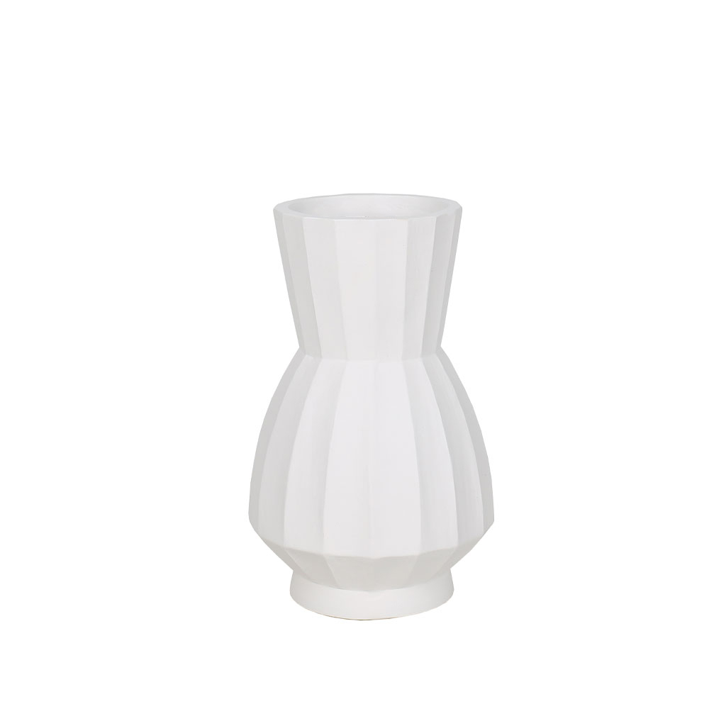Το βάζο FOLDA είναι ένα διακοσμητικό από MgO σε λευκή απόχρωση, με φόρμα που δίνει ισορροπία και χαρακτήρα στη σύνθεση. Η ραβδωτή του επιφάνεια προσθέτει υφή, ενώ το μέγεθός του το καθιστά εύκολο να ενταχθεί σε κονσόλες, ράφια ή τραπεζάκια.Μπορεί να σταθεί μόνο του ή σε συνδυασμό με άλλα διακοσμητικά, προσθέτοντας συνοχή και μια καθαρή αισθητική στον χώρο.