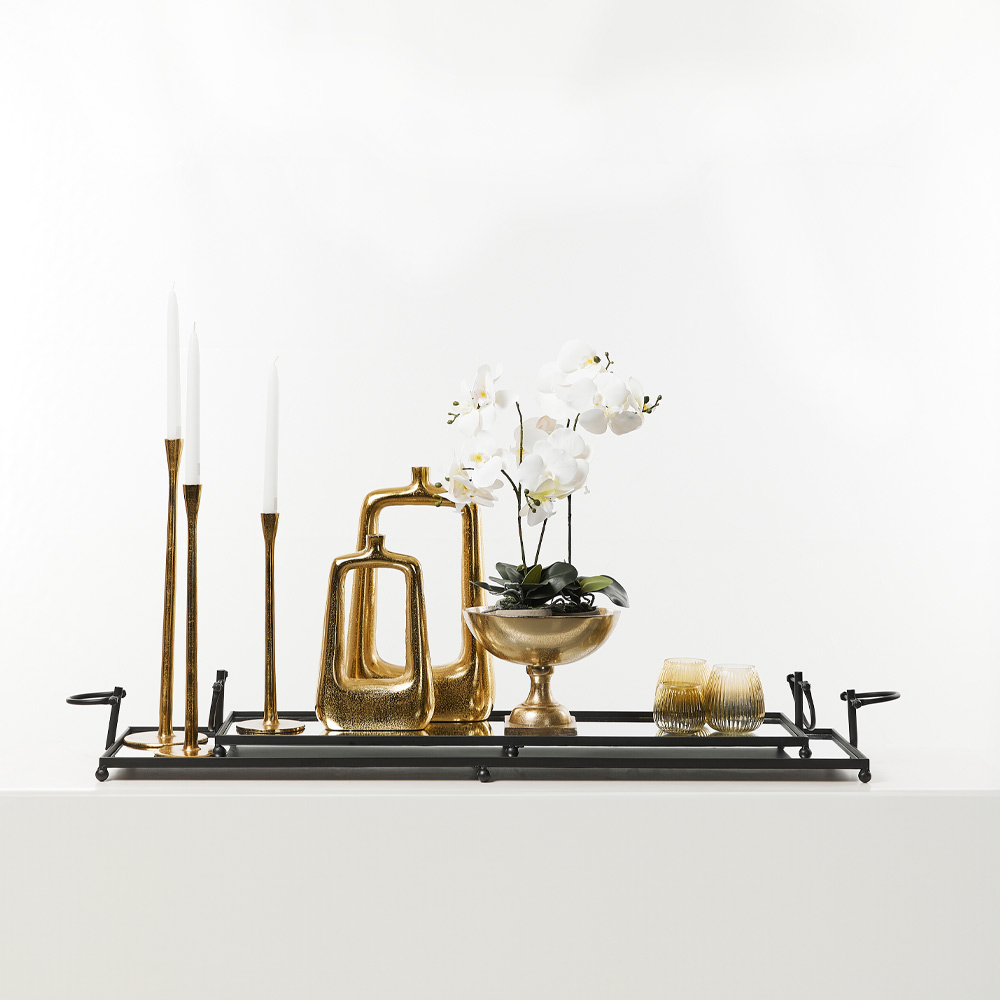 Το κηροπήγιο HASTAM αποπνέει μια αίσθηση διακριτικής πολυτέλειας, χάρη στη λεπτή και επιμηκυμένη μορφή του που προσθέτει ύψος και κομψότητα σε κάθε χώρο. Η χρυσή του επιφάνεια δημιουργεί μια ζεστή λάμψη που αναδεικνύει ιδιαίτερα τόσο μοντέρνες όσο και κλασικές διακοσμήσεις. Η κατασκευή από αλουμίνιο του χαρίζει ανθεκτικότητα, στερεότητα και αντοχή στον χρόνο, γεγονός που το καθιστά ιδανικό για καθημερινή χρήση αλλά και για πιο formal παρουσιάσεις σε καταστήματα, ξενοδοχεία ή χώρους φιλοξενίας.