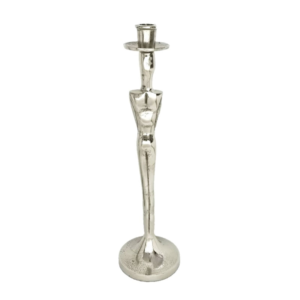 Το κηροπήγιο HERR στα 43 cm δημιουργεί έντονη διακοσμητική παρουσία χάρη στη γλυπτική μορφή και την επιβλητική κάθετη γραμμή του. Η ασημί μεταλλική του επιφάνεια αποτυπώνει όμορφα το φως και δίνει μια αίσθηση καθαρής κομψότητας. Ιδανικό για μεγάλους χώρους και σημεία που χρειάζονται statement αντικείμενο.