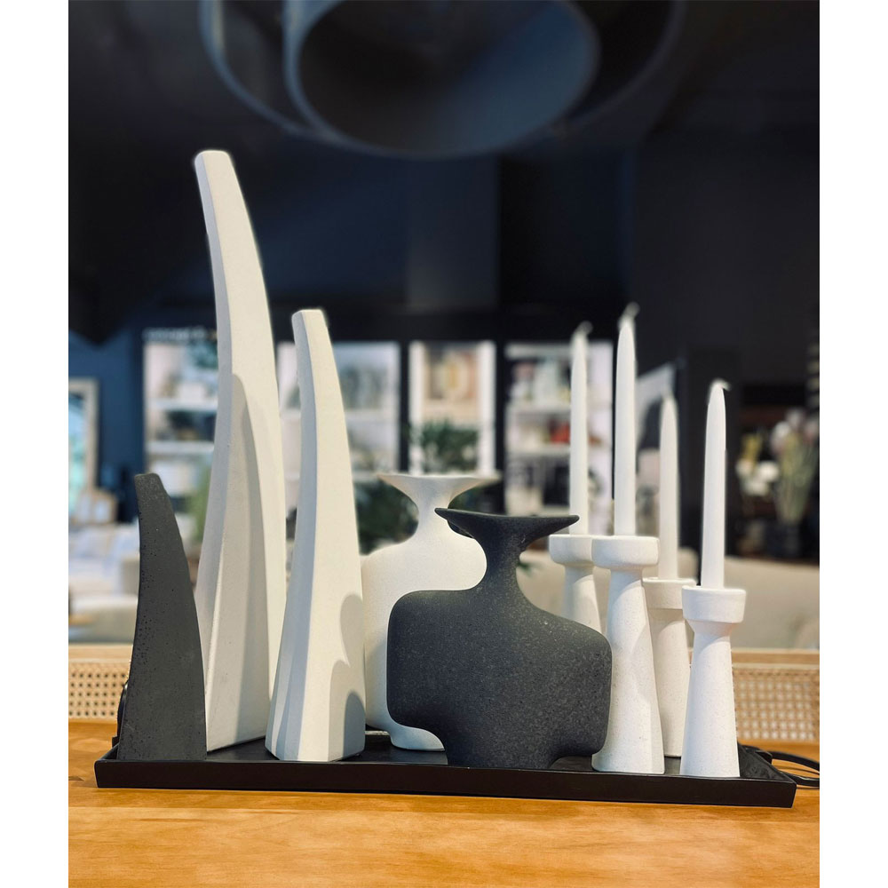 Το κεραμικό βάζο Irida, σε μαύρο και λευκό χρώμα, ξεχωρίζει για τον μοντέρνο και κομψό σχεδιασμό του. Με τις λιτές, γεωμετρικές γραμμές και την διακριτική υφή τους, αποτελεί ιδανική επιλογή για σύγχρονη ή minimal διακόσμηση. Αποκλειστικά διακοσμητική χρήση – δεν ενδείκνυται η χρήση νερού.