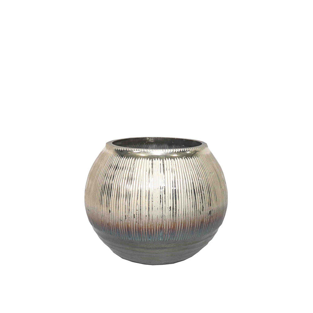 Η βάση ρεσώ JEG σε χρυσό–μπρονζέ–γκρι συνδυασμό προσφέρει ένα εκλεπτυσμένο μεταλλικό εφέ με φινίρισμα Silver 0.190. Η γυάλινη επιφάνεια δημιουργεί όμορφες αντανακλάσεις όταν ανάβει το κερί, χαρίζοντας ζεστή και ατμοσφαιρική λάμψη. Το στρογγυλό compact σχήμα της την καθιστά ιδανική για μικρές συνθέσεις σε τραπέζια, μπουφέδες ή ράφια. Ταιριάζει σε μοντέρνους, industrial και cozy χώρους. Ένα elegant γυάλινο κομμάτι που απογειώνει τη διακόσμηση.