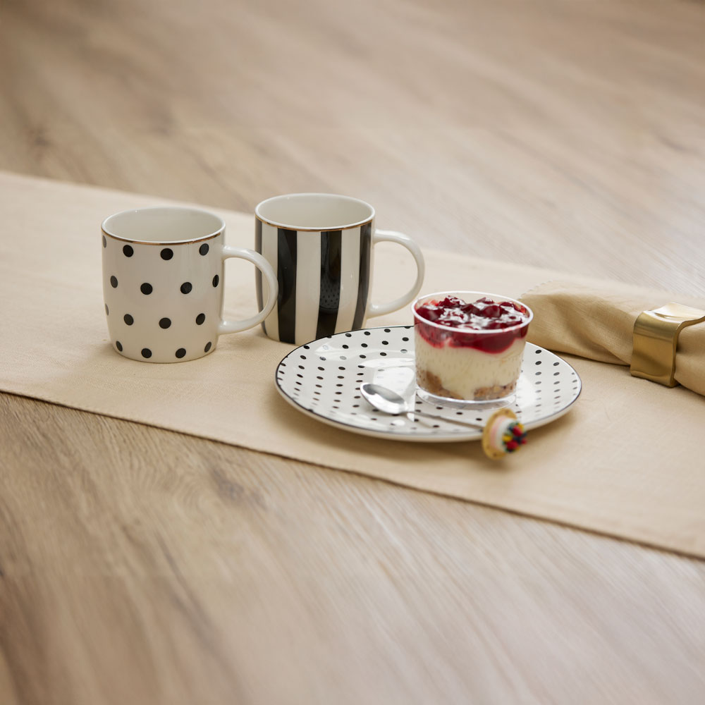 Η κούπα JOLIE ROMBUS συνδυάζει λευκή πορσελάνη New Bone China με μαύρο σχέδιο και χρυσές πινελιές, δημιουργώντας μια ισορροπία ανάμεσα στο μοντέρνο και το διαχρονικό. Η υψηλή ποιότητα του υλικού προσφέρει απαλή υφή και ευχάριστη αίσθηση στο κράτημα. Ένα κομμάτι που ξεχωρίζει σε κάθε τραπέζι.