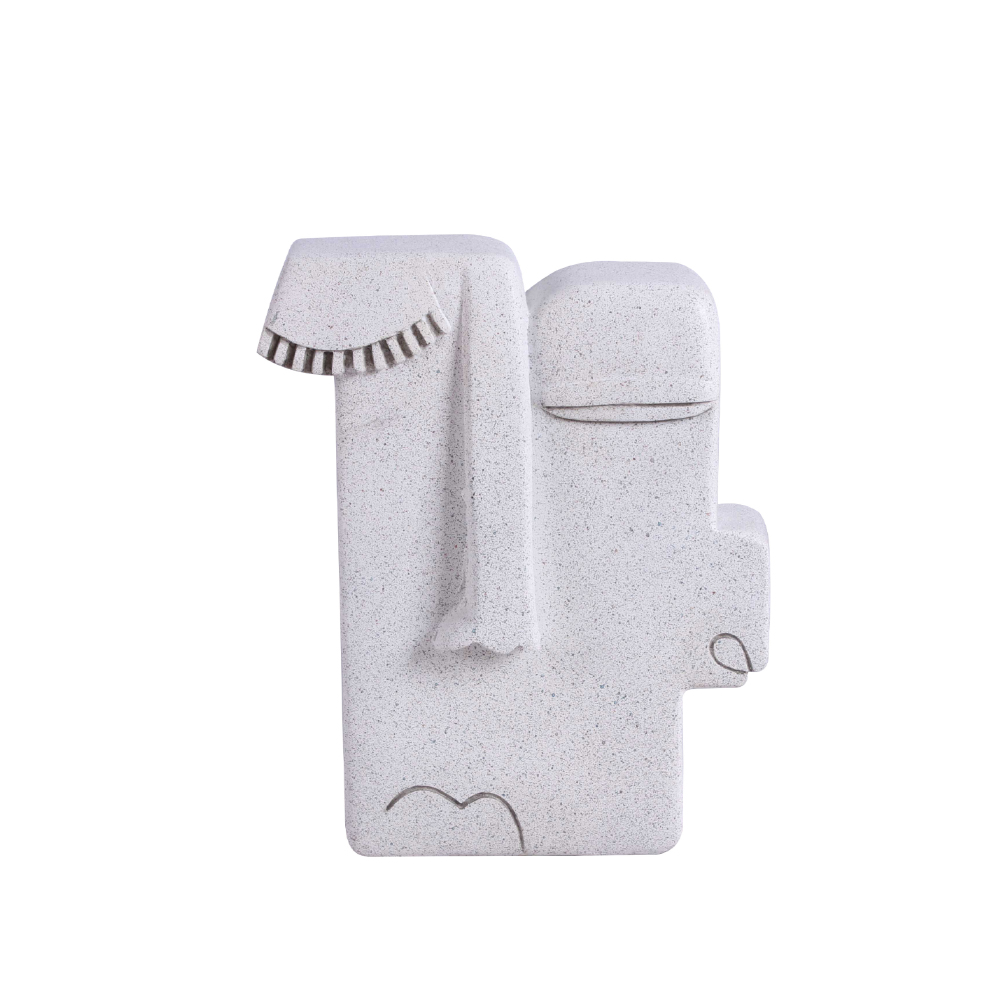Το KUVAUS 2 διακοσμητικό πρόσωπο ξεχωρίζει για την αφαιρετική, μοντέρνα του φόρμα και το καθαρό λευκό φινίρισμα που φωτίζει τον χώρο. Οι γεωμετρικές γραμμές και οι διακριτικές λεπτομέρειες δημιουργούν ένα καλλιτεχνικό αποτέλεσμα που λειτουργεί σαν μικρό γλυπτό. Με διαστάσεις 18x7x22cm, ταιριάζει ιδανικά σε κονσόλες, ράφια ή βιβλιοθήκες, προσθέτοντας χαρακτήρα χωρίς να βαραίνει τη σύνθεση. Κατασκευασμένο από polyresin, μπορεί να σταθεί μόνο του ή να συνδυαστεί με άλλα διακοσμητικά σε minimal ύφος.