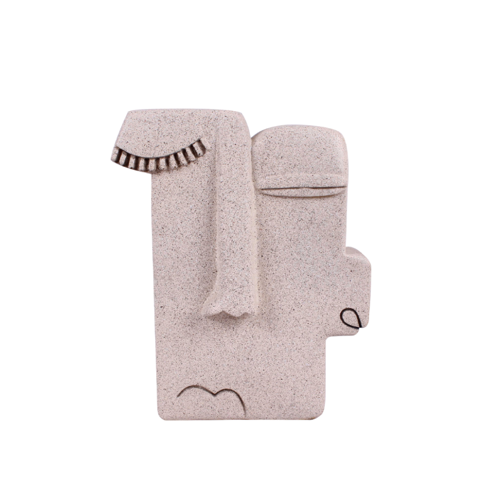 Διακοσμητικό KUVAUS 3 με αφηρημένο πρόσωπο σε γεωμετρική μορφή από polyresin, σε μπεζ χρώμα με λεπτομέρειες σε μαύρο. Μοντέρνα και καλλιτεχνική προσέγγιση με παιχνιδιάρικη διάθεση, ιδανική για contemporary, urban ή minimal χώρους. Ιδανικό για ράφια, βιβλιοθήκες ή sideboards που θέλουν να ξεχωρίσουν.