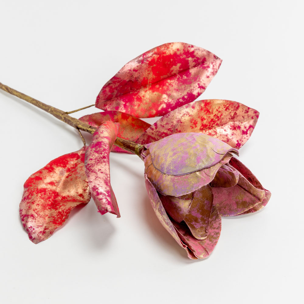 Η τεχνητή MAGNOLIA σε μπορντό και χρυσές αποχρώσεις αποπνέει πολυτέλεια και φθινοπωρινή κομψότητα. Με ύψος 58 cm, αναδεικνύεται σε βάζα ή εποχιακές συνθέσεις, προσθέτοντας λάμψη και θερμότητα. Η ρεαλιστική της υφή από ύφασμα και PVC εξασφαλίζει ανθεκτικότητα και αισθητικό αποτέλεσμα υψηλού επιπέδου.