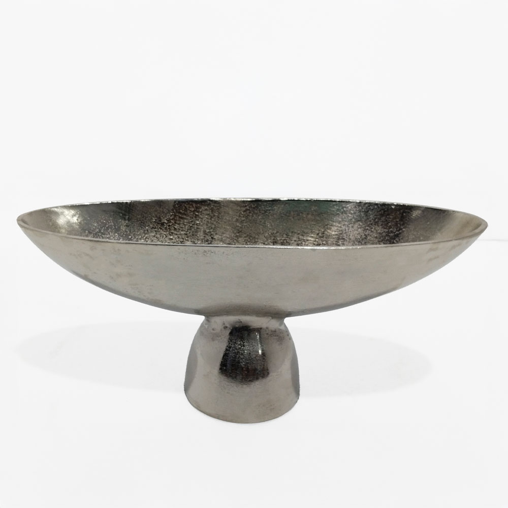 Το MENDO είναι ένα statement μπωλ με πόδι, σε λαμπερό silver nickel φινίρισμα, που αποπνέει σύγχρονη πολυτέλεια. Η ψηλή βάση του προσθέτει ύψος και επιτρέπει εντυπωσιακό styling σε coffee tables ή μπουφέδες. Ιδανικό για διακόσμηση με διακοσμητικά αντικείμενα ή φρούτα. Ένα κομμάτι που τραβά τα βλέμματα χωρίς να επιβαρύνει τον χώρο.