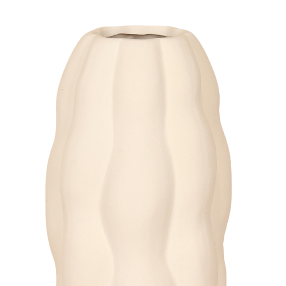 Το βάζο MIRA ξεχωρίζει για τη λιτή, σύγχρονη του παρουσία και τη φωτεινή λευκή απόχρωση που δίνει καθαρότητα στον χώρο. Κατασκευασμένο από κεραμικό, συνδυάζει απαλές καμπύλες με ισορροπημένες γραμμές, δημιουργώντας ένα αντικείμενο που δίνει ουσία στη διακόσμηση χωρίς να την βαραίνει. Το ύψος των 35,5cm το καθιστά ιδανικό για τοποθέτηση σε κονσόλες, τραπέζια ή δάπεδο, είτε ως αυτόνομο στοιχείο είτε σε συνδυασμό με λουλούδια ή κλαδιά. Μια επιλογή που προσθέτει ηρεμία, φως και διαχρονική κομψότητα στον χώρο.