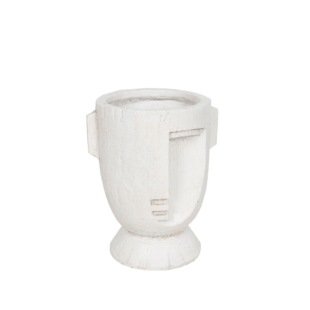 Το βάζο MUSE ξεχωρίζει για τη γλυπτική του μορφή που παραπέμπει σε ανθρώπινο πρόσωπο, αποτυπωμένο με απαλότητα και ισορροπία. Η λευκή απόχρωση και η ματ υφή του MgO δημιουργούν ένα ήρεμο, φωτεινό αποτέλεσμα που δένει φυσικά με τον χώρο, χωρίς να γίνεται επιβλητικό.Με διαστάσεις 23x20x28 cm, τοποθετείται ιδανικά σε κονσόλες, μπουφέδες ή ράφια, λειτουργώντας κυρίως ως διακοσμητικό αντικείμενο με καλλιτεχνικό χαρακτήρα. Ταιριάζει όμορφα σε σύγχρονους, minimal ή elegant χώρους και προσθέτει μια διακριτική, ανθρώπινη παρουσία στη διακόσμηση.