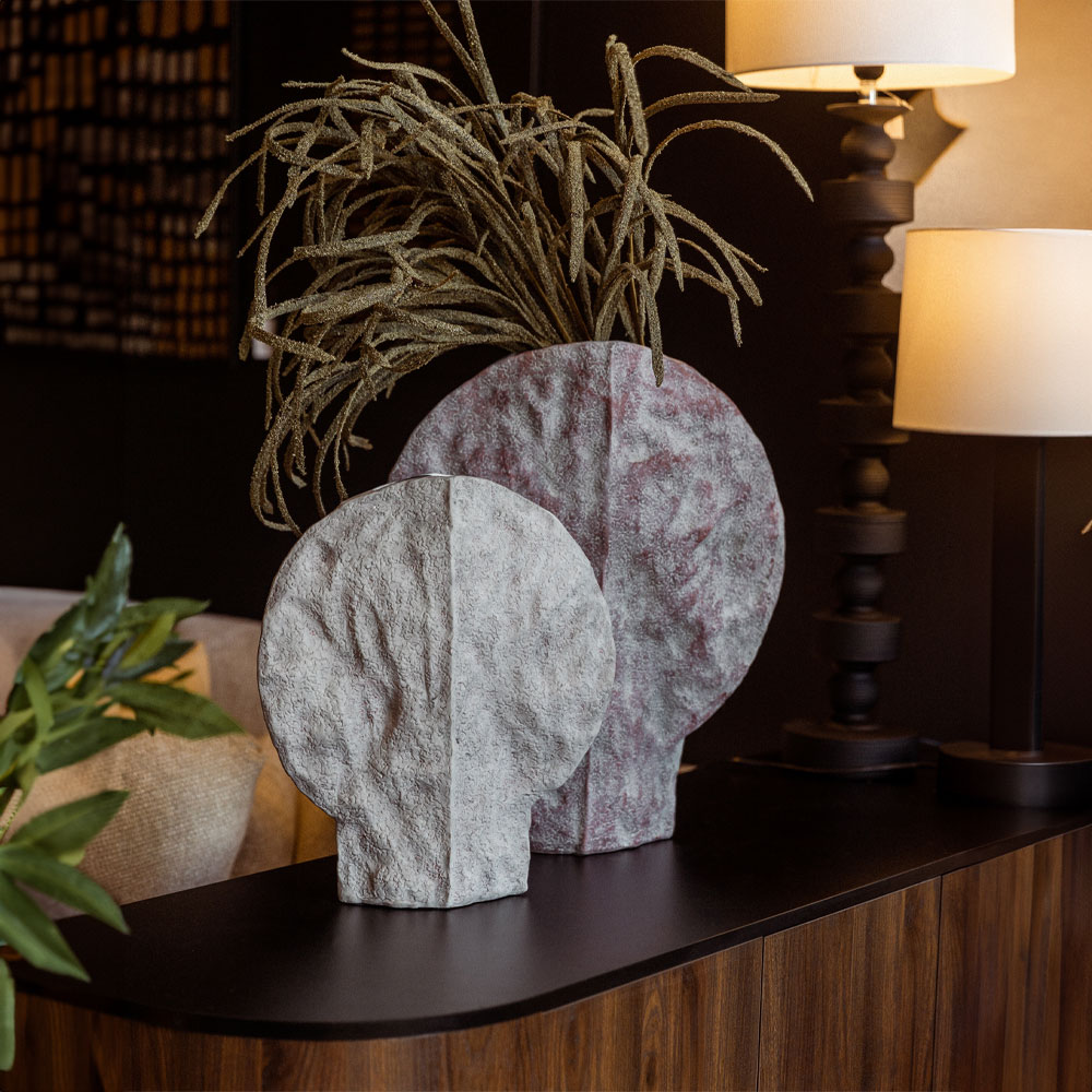 Το κεραμικό βάζο Myrti σε γκρι απόχρωση ξεχωρίζει για τη φυσική του υφή και τη μορφή του που θυμίζει οργανικές γραμμές. Η αισθητική του συνδυάζει απλότητα με μια πιο ζεστή, φυσική προσέγγιση, ενσωματώνοντας εύκολα στον χώρο.Ταιριάζει σε σύγχρονες διακοσμήσεις και μπορεί να τοποθετηθεί σε τραπέζια, κονσόλες ή ράφια, είτε μόνο του είτε μαζί με άλλα αντικείμενα.Αποκλειστικά διακοσμητική χρήση – δεν ενδείκνυται η χρήση νερού.
