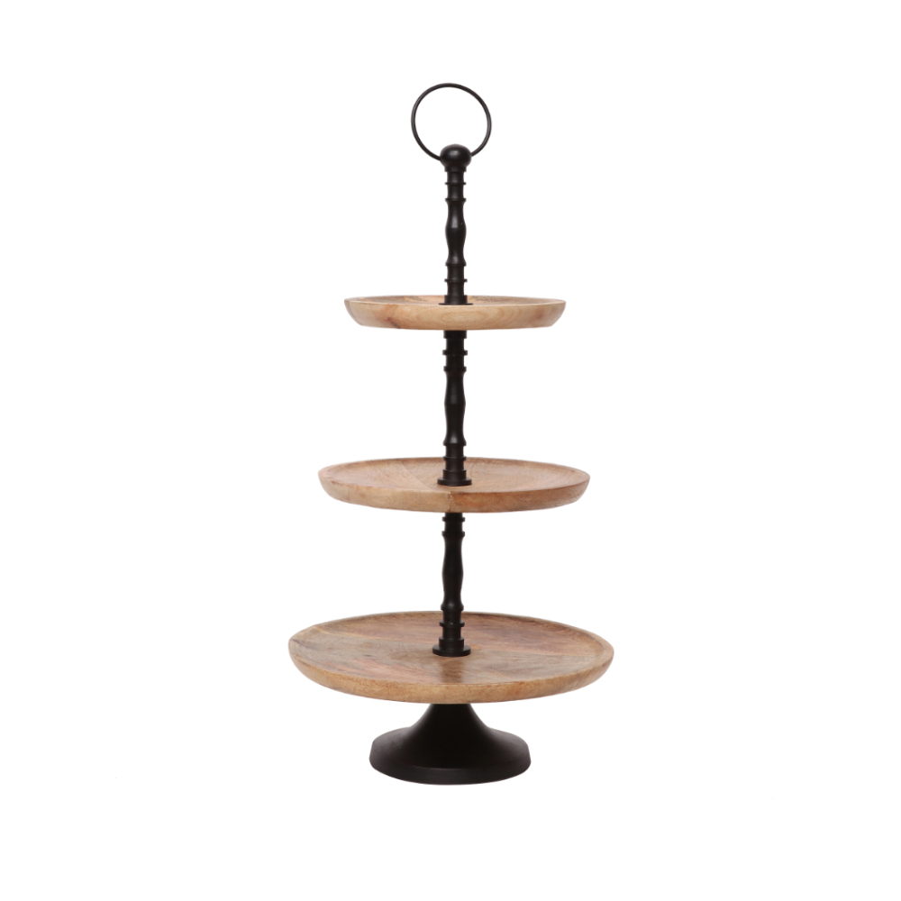 Η NIKISI είναι μια τριώροφη ορντεβιέρα που συνδυάζει φυσικό ξύλο mango με μαύρο αλουμίνιο, δημιουργώντας μια κομψή και μοντέρνα αισθητική. Τα τρία επίπεδα προσφέρουν άνετο χώρο για γλυκά, φρούτα ή ορεκτικά, καθιστώντας τη ιδανική για φιλοξενία ή καθημερινή χρήση. Το φυσικό φινίρισμα του ξύλου προσθέτει ζεστασιά, ενώ το μεταλλικό στοιχείο δίνει απέριττο χαρακτήρα. Ένα statement κομμάτι που αναβαθμίζει κάθε τραπέζι.