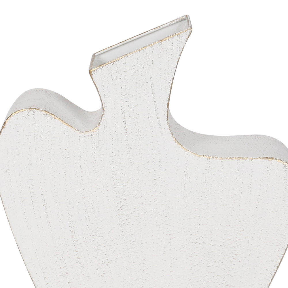 Το μεταλλικό βάζο NIRA σε λευκή απόχρωση και διαστάσεις 30,5x8x35 cm διαθέτει μινιμαλιστικό σχεδιασμό με καθαρές γραμμές. Το λεπτό του προφίλ το καθιστά ιδανικό για στενά σημεία, όπως κονσόλες ή περβάζια. Η μεταλλική του υφή προσθέτει μοντέρνα πινελιά και φωτίζει τον χώρο με αντανακλάσεις. Συνδυάζεται τέλεια με διακοσμητικά καλάμια ή ψηλά αποξηραμένα άνθη. Ταιριάζει με σκανδιναβική, industrial και σύγχρονη διακόσμηση.