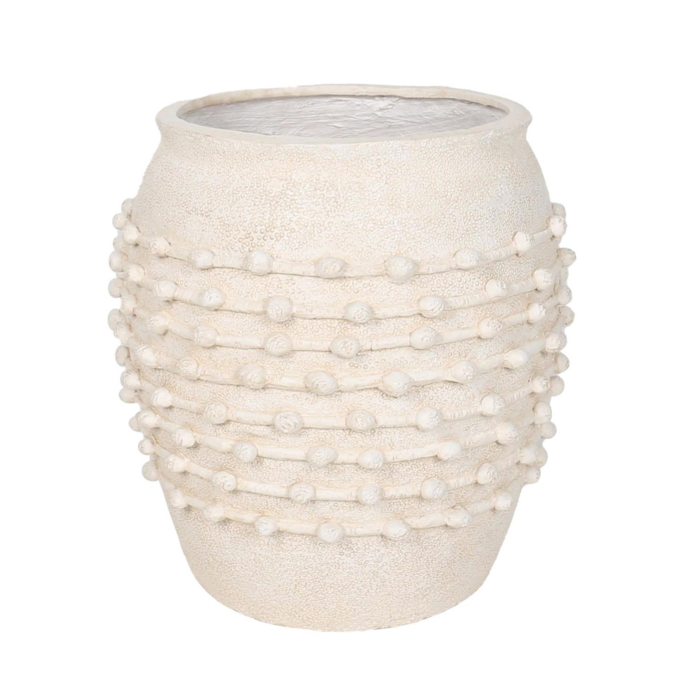 Η γλάστρα NISYROS 56 cm ξεχωρίζει με τη μπεζ mat επιφάνεια και τις διακριτικές ανάγλυφες λεπτομέρειες που δίνουν artisanal χαρακτήρα. Το υλικό MgO εξασφαλίζει αντοχή σε εσωτερικούς και εξωτερικούς χώρους, χωρίς να βαραίνει το σύνολο. Ιδανική για εισόδους, σαλόνια και χώρους με φυσική ή rustic αισθητική, προσθέτοντας ζεστασιά και premium εμφάνιση.