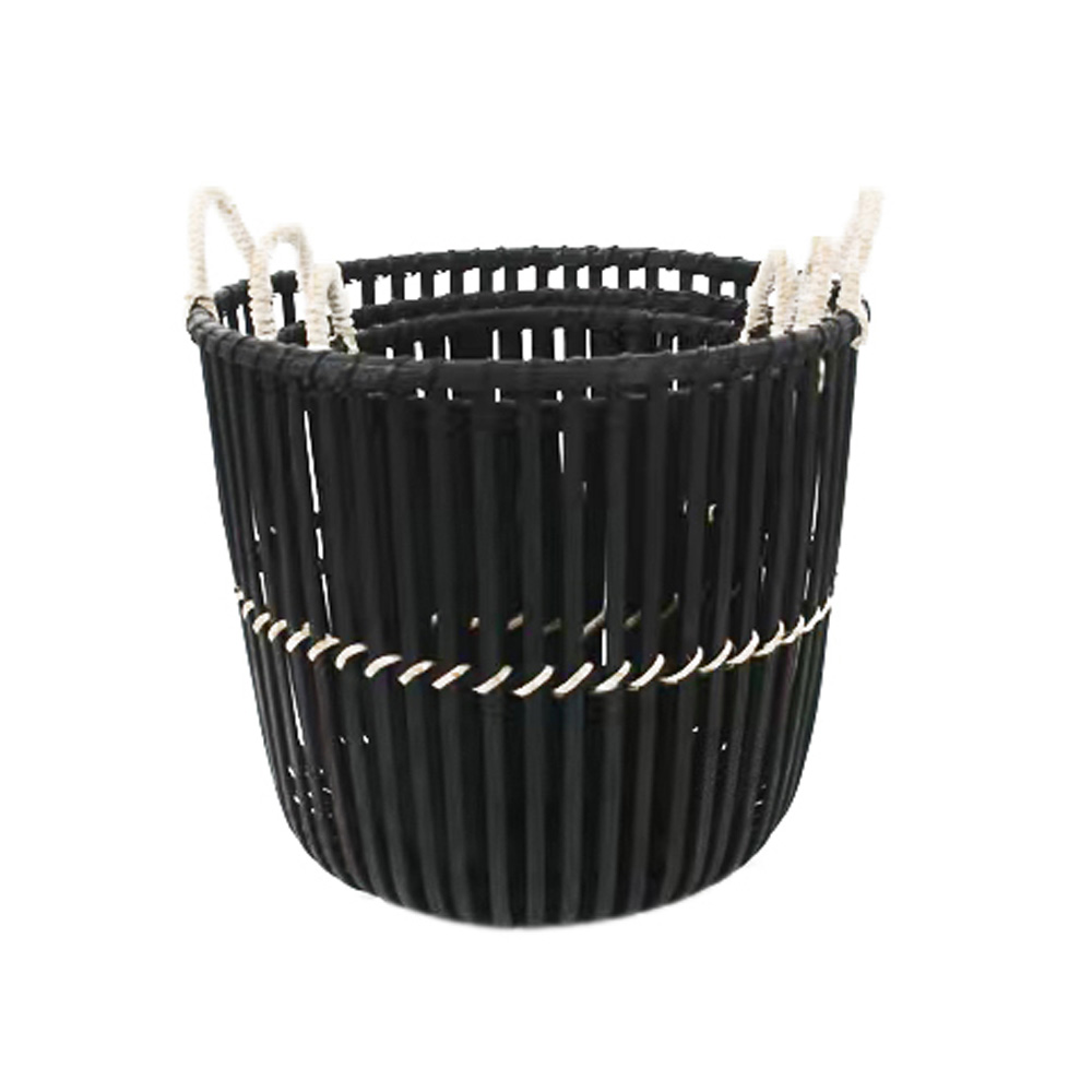 Το σετ καλαθιών NUBIA 3τμχ εντυπωσιάζει με τον έντονο συνδυασμό μαύρου και φυσικού bamboo, δημιουργώντας μοντέρνα και κομψή αντίθεση. Η πλέξη από bamboo και σχοινί προσφέρει ανθεκτικότητα, ανάλαφρη αίσθηση και αυθεντικό χειροποίητο χαρακτήρα. Ιδανικά για minimal, urban ή contemporary διακόσμηση. Τα τρία μεγέθη επιτρέπουν πολλαπλές χρήσεις αποθήκευσης σε καθιστικά, υπνοδωμάτια και χώρους εισόδου. Ένα statement σετ που προσθέτει design value σε κάθε χώρο.