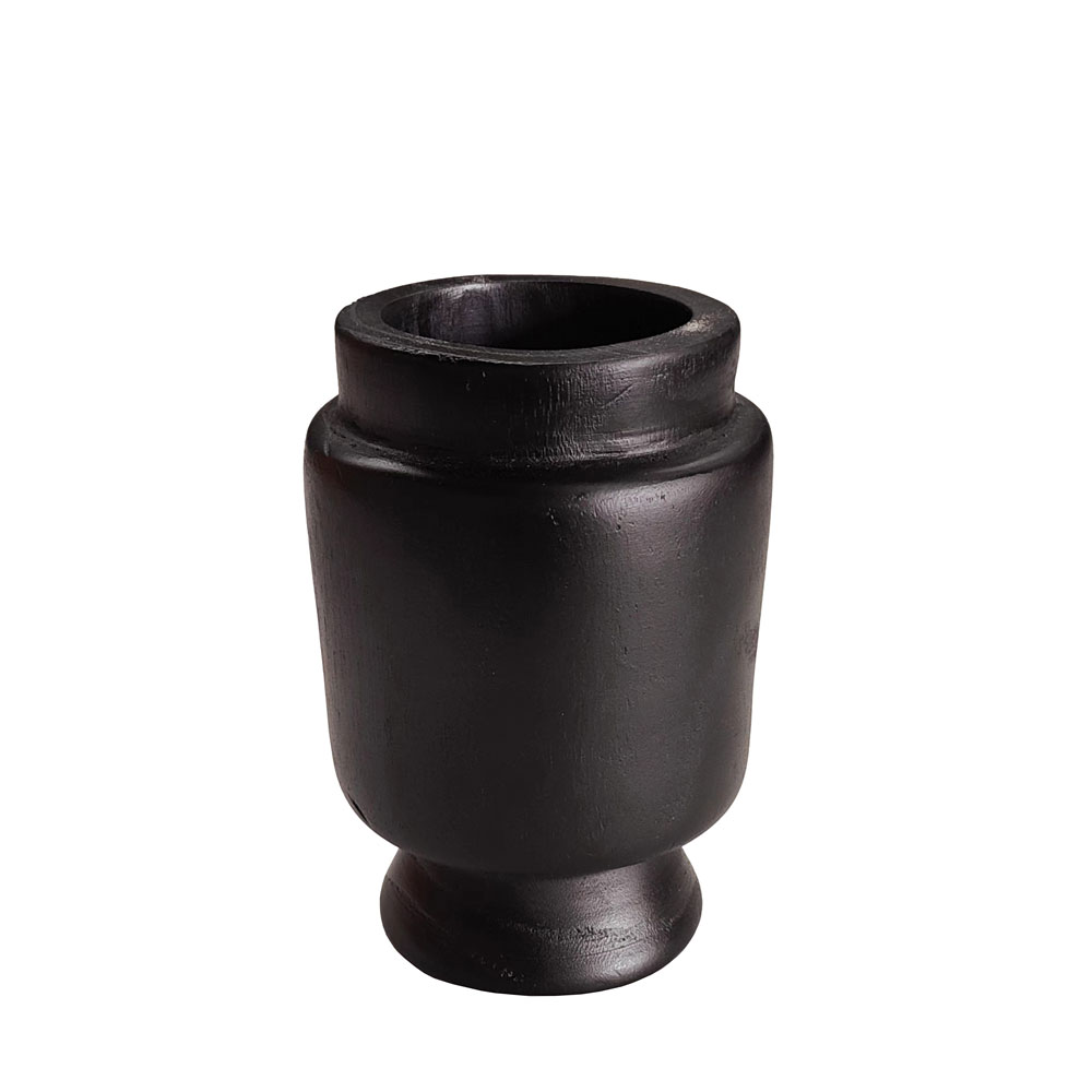 Το βάζο NUBIA είναι ένα ξύλινο διακοσμητικό σε μαύρη απόχρωση, με φυσική υφή που αναδεικνύει το υλικό. Το μέγεθός του το καθιστά εύχρηστο για τοποθέτηση σε τραπεζάκια, ράφια ή κονσόλες, είτε μόνο του είτε ως μέρος μιας σύνθεσης. Προορίζεται αποκλειστικά για διακοσμητική χρήση και μπορεί να συνδυαστεί με άλλα κομμάτια της ίδιας σειράς.