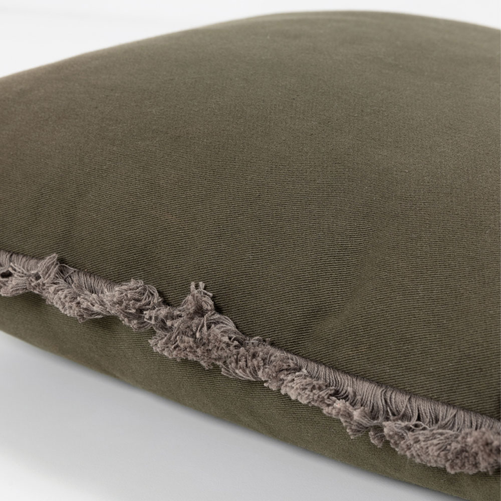 Το διακοσμητικό μαξιλάρι Oliven είναι η επιτομή της εκλεπτυσμένης αισθητικής. Με βαμβακερό ύφασμα σε λαδί απόχρωση και διακοσμητικά κρόσσια, αποτελεί την ιδανική προσθήκη για να αναδείξετε τον καναπέ, την πολυθρόνα ή το κρεβάτι σας. Η αρμονία των αποχρώσεων και η πολυτελής υφή του δημιουργούν μια αίσθηση ζεστασιάς και κομψότητας, μεταμορφώνοντας κάθε χώρο σε ένα καταφύγιο στυλ και φινέτσας.