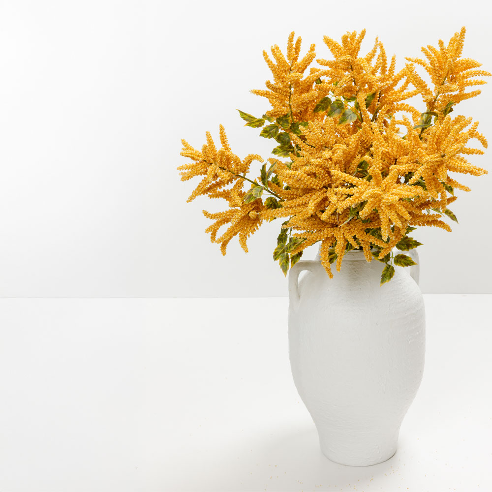 Το τεχνητό λουλούδι POLLET σε κίτρινη και πράσινη παλέτα φωτίζει τον χώρο με χαρούμενη, ζεστή ενέργεια. Με ύψος 90 cm, ταιριάζει σε εποχιακές ή καθημερινές συνθέσεις. Η PVC κατασκευή του προσφέρει φυσική υφή και σταθερό χρώμα. Ιδανικό για ανοιξιάτικα ή φωτεινά διακοσμητικά concepts.