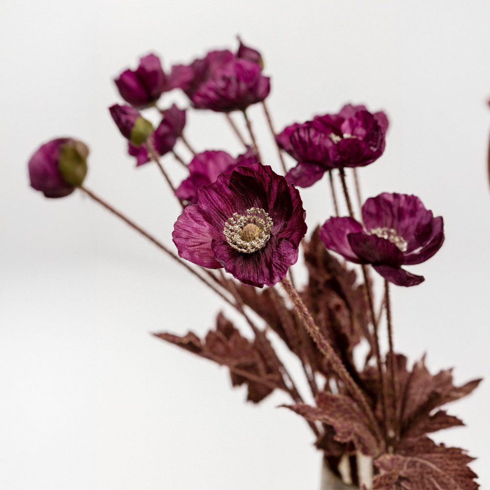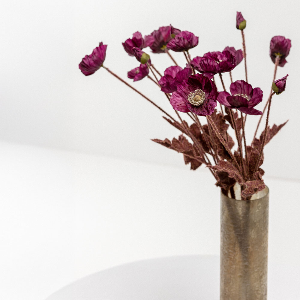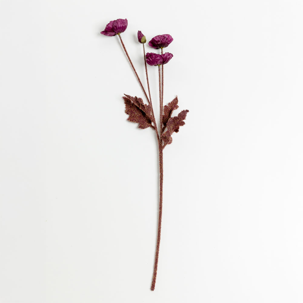 Το μωβ τεχνητό λουλούδι POPPY 60cm εντυπωσιάζει με τη βαθιά και εκλεπτυσμένη του απόχρωση, ιδανική για πιο έντονες, μοντέρνες και καλλιτεχνικές διακοσμήσεις. Συνδυάζεται υπέροχα με ουδέτερους ή μεταλλικούς τόνους, αλλά και με φυσικά κλαδιά για πιο δραματικές συνθέσεις. Η ρεαλιστική υφή του πολυεστέρα αναδεικνύει την κομψότητα του λουλουδιού και φέρνει στο χώρο μια πινελιά πολυτέλειας και χαρακτήρα.