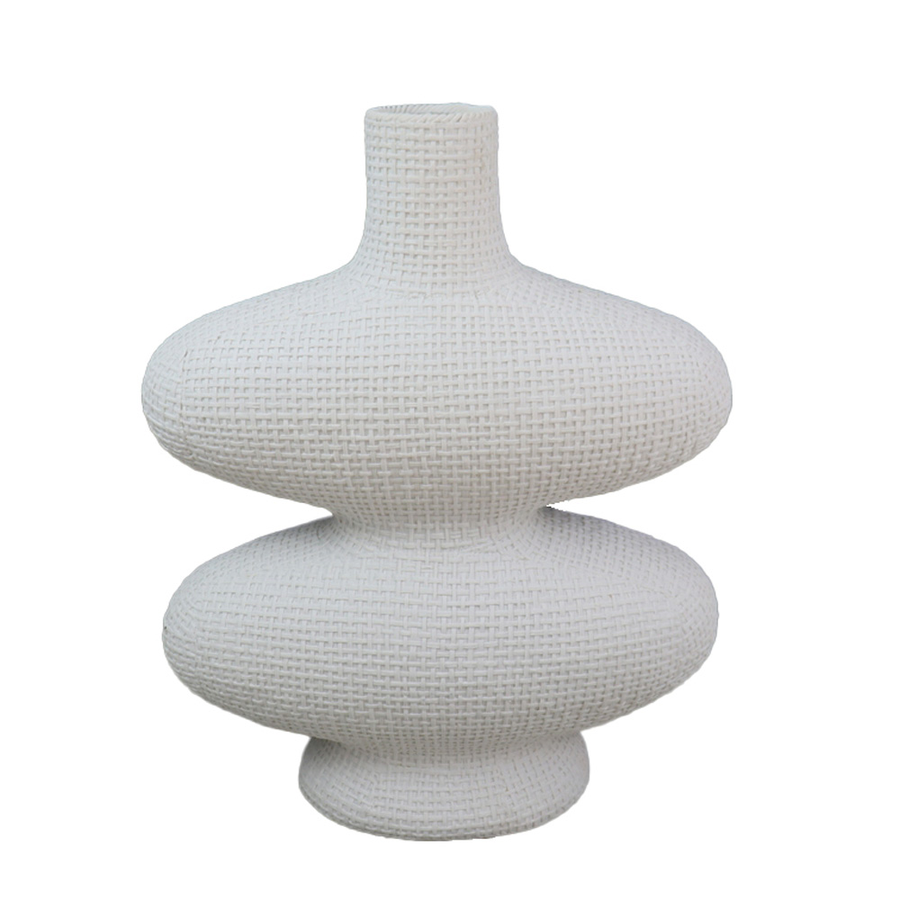 Το λευκό βάζο RANDI από polyresin ξεχωρίζει για την ανάγλυφη υφή του και τη μορφή του που δίνει μια πιο μαλακή και ισορροπημένη εικόνα στη σύνθεση. Οι καμπύλες του συνδυάζονται αρμονικά με τη γεωμετρία του, δημιουργώντας ένα αποτέλεσμα που ενσωματώνεται εύκολα στον χώρο.Οι αποχρώσεις του λευκού, του μαύρου και της terracotta λειτουργούν είτε αυτόνομα είτε σε συνδυασμό μεταξύ τους, προσφέροντας ευελιξία στη διακόσμηση. Ταιριάζει σε σύγχρονες και πιο φυσικές συνθέσεις, προσθέτοντας χαρακτήρα χωρίς να βαραίνει το σύνολο.
