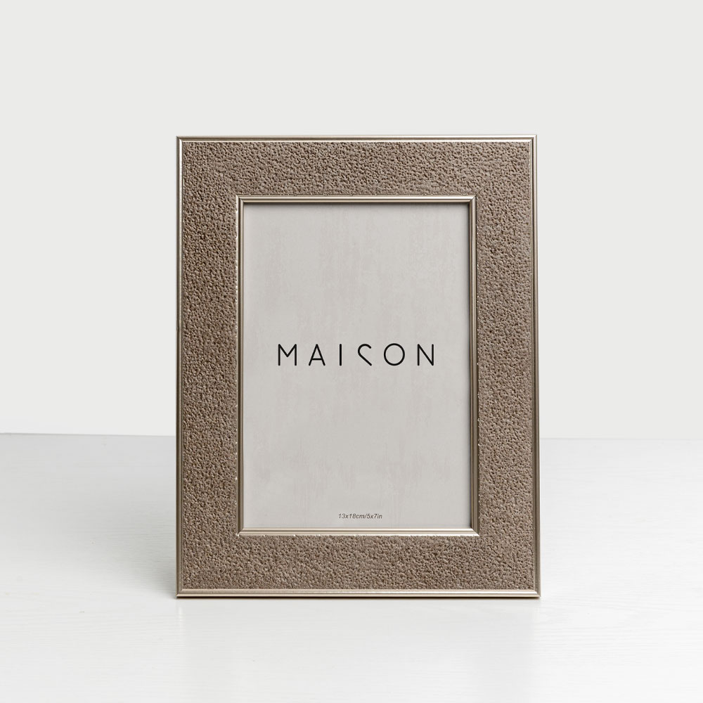 Η κορνίζα RELIEF σε puro απόχρωση (σοφιστικέ γκρι-μπεζ τόνος) με ασημί τελείωμα αποτελεί chic επιλογή για σύγχρονους χώρους. Η ανάγλυφη υφή του polyresin δίνει αίσθηση βάθους και ποιότητας. Ενδείκνυται για επαγγελματικούς χώρους και κατοικίες με refined στυλ.