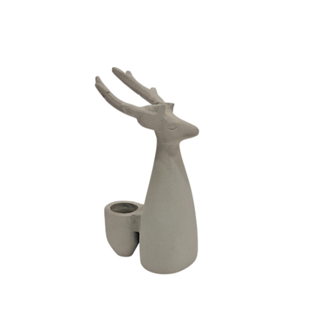 Το χριστουγεννιάτικο διακοσμητικό κηροπήγιο SIVOR από αλουμίνιο συνδυάζει μίνιμαλ αισθητική με γλυπτική φόρμα εμπνευσμένη από τάρανδο. Η λευκή textured επιφάνεια προσδίδει φωτεινότητα και καθαρότητα, αναδεικνύοντας τις λεπτομέρειες του σχεδιασμού. Το μέγεθός του επιτρέπει ευέλικτη τοποθέτηση σε επιτραπέζιες συνθέσεις και βιτρίνες. Ιδανικό για elegant, modern και monochrome χριστουγεννιάτικες διακοσμήσεις.