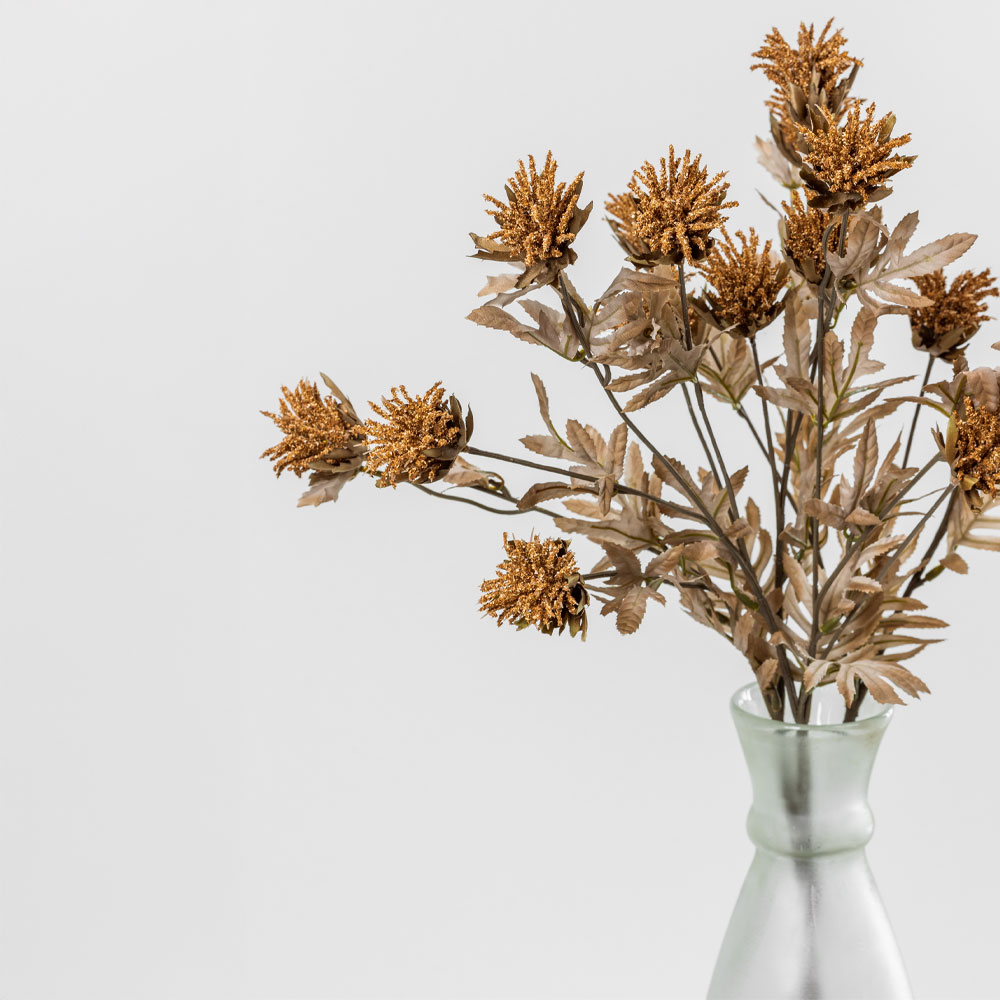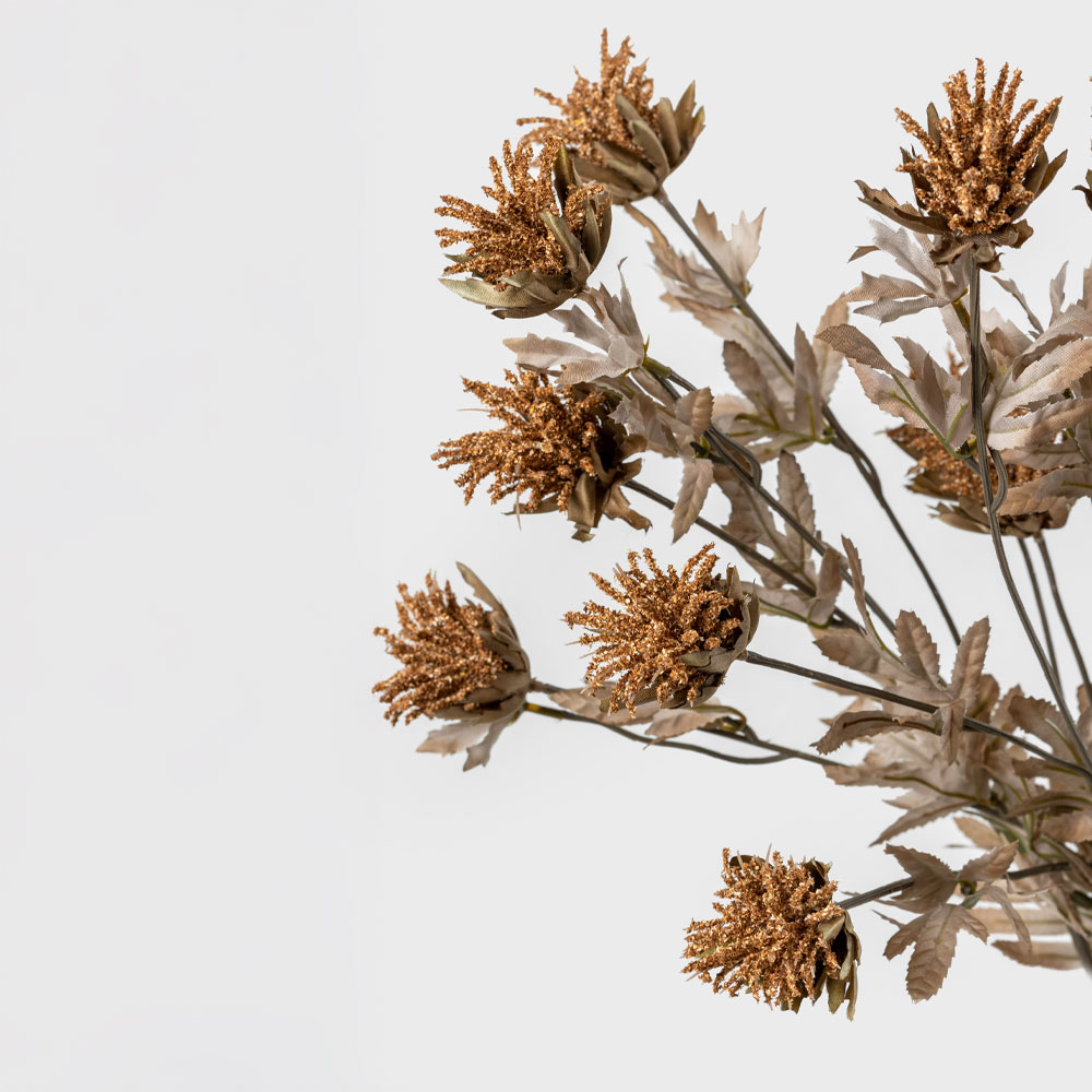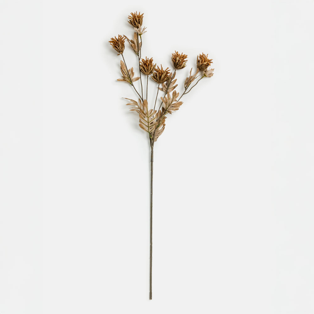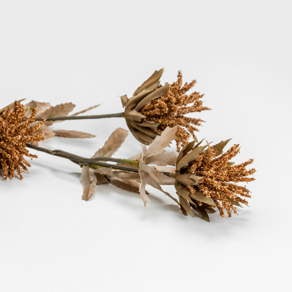 Το τεχνητό λουλούδι THISTLEX 83cm με ζεστή καφέ απόχρωση και πράσινα φύλλα προσφέρει μια φυσική και αρμονική νότα στη διακόσμηση. Η υψηλής ποιότητας κατασκευή από polyester εξασφαλίζει ανθεκτικότητα και διατήρηση της όψης του για μεγάλο χρονικό διάστημα, χωρίς την ανάγκη συντήρησης. Ιδανικό για μοντέρνες και ρουστίκ ανθοσυνθέσεις, βάζα και διακοσμητικά στοιχεία.
