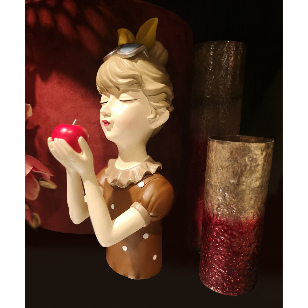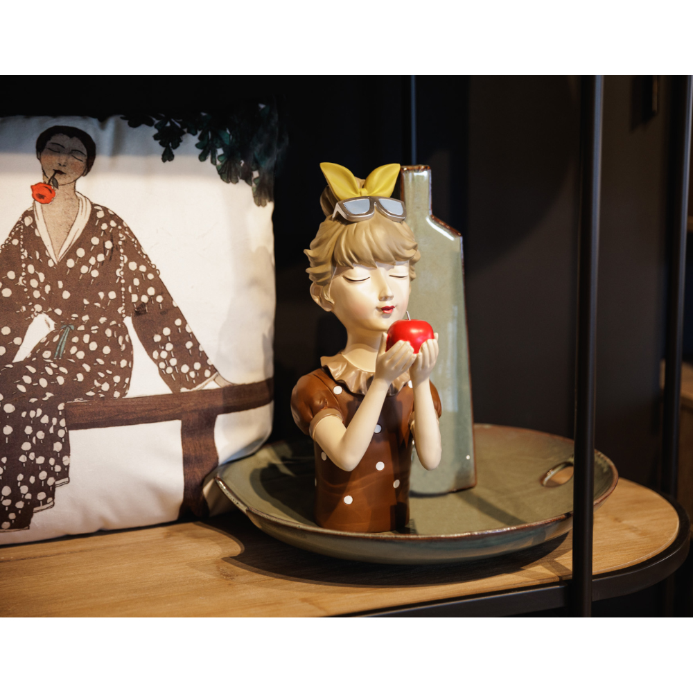 Η διακοσμητική φιγούρα TRAVEL GIRL 7 αποτυπώνει με παιχνιδιάρικη κομψότητα ένα κορίτσι σε ρετρό στιλ που κρατά ένα κόκκινο μήλο. Με πολυχρωμία και ρομαντική διάθεση, αποτελεί ιδανική επιλογή για ράφια, κονσόλες ή βιτρίνες που αναζητούν ένα pop-art στοιχείο με χαρακτήρα. Κατασκευασμένη από polyresin με προσεγμένες λεπτομέρειες.