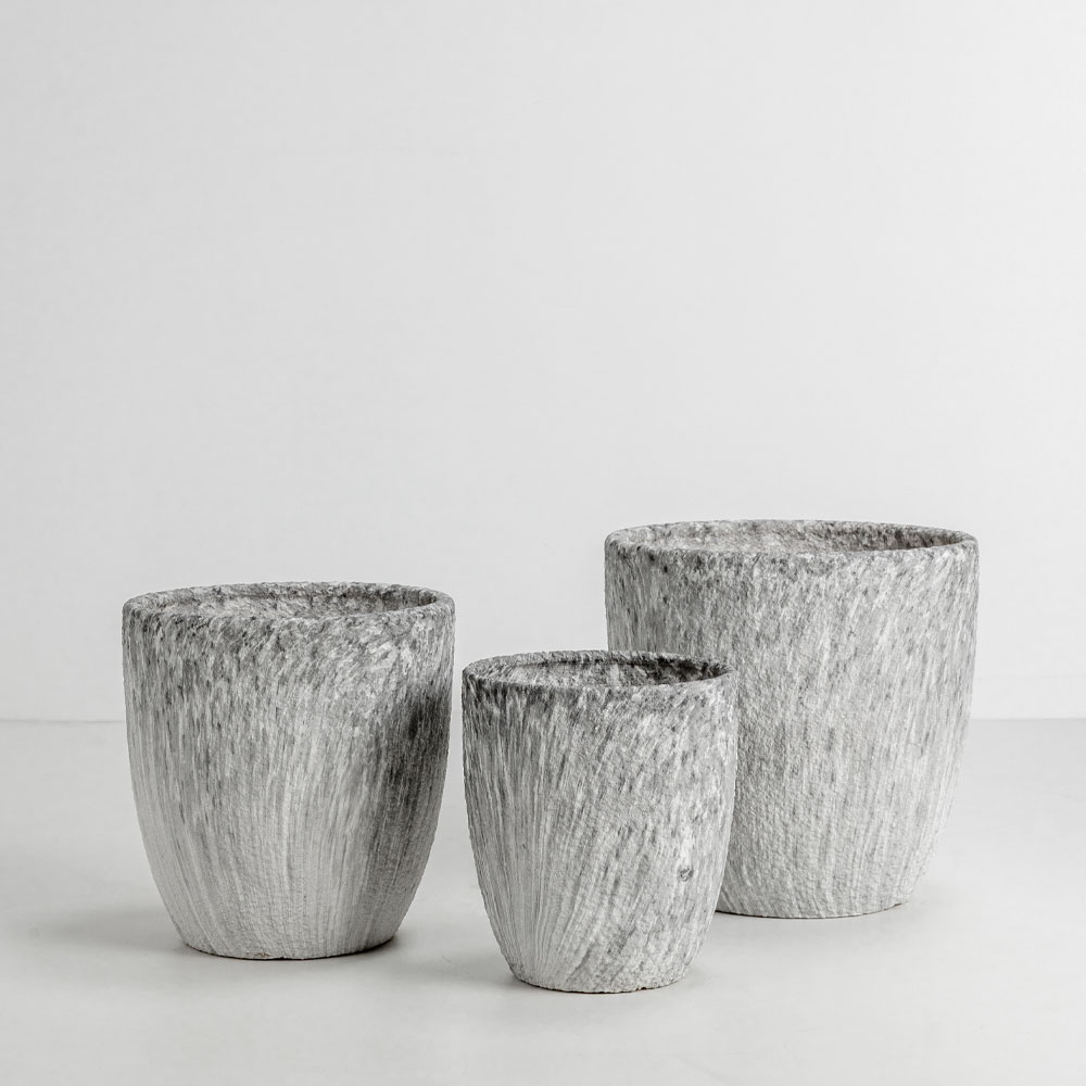 Η VINSON Set 3τμχ συνδυάζει διακριτικό γκρι με καθαρό λευκό, φέρνοντας φρεσκάδα και minimal κομψότητα. Ταιριάζει ιδανικά σε scandi αισθητική, γραφεία ή μοντέρνα σαλόνια. Οι τρεις διαφορετικές διαστάσεις δίνουν ευελιξία σε φυτικές συνθέσεις και βοηθούν στο δέσιμο του χώρου. Ένα κομμάτι που δίνει ισορροπία και φωτεινότητα στη διακόσμηση.