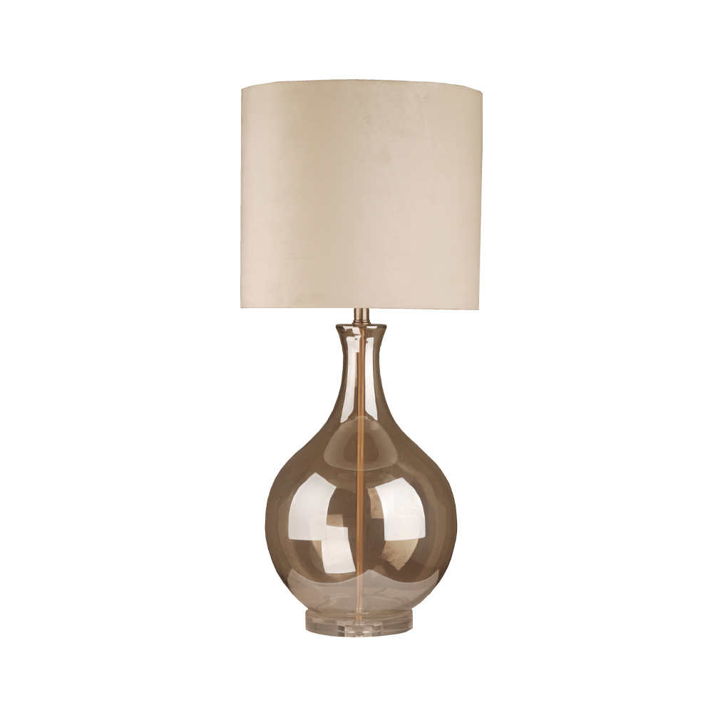 Το επιτραπέζιο φωτιστικό MIA συνδυάζει διαφάνεια και πολυτέλεια, με κρυστάλλινη βάση σε απόχρωση μελιού και suede μπεζ καπέλο που χαρίζει ζεστασιά και απαλότητα. Το αποτέλεσμα είναι κομψό, φωτεινό και refined. Ταιριάζει σε σαλόνια, master bedrooms, χώρους φιλοξενίας και elegant εισόδους.